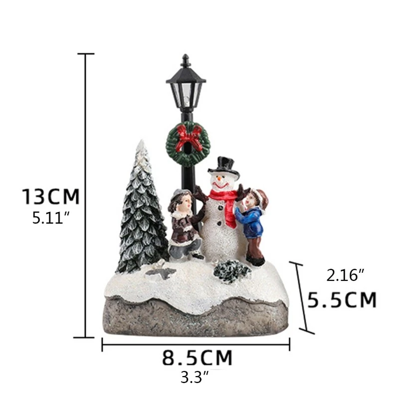 and high Features: This ornament features a Christmas tree covered in snow with snowman and street lamp decorated. LED light: The colorful LED lights look beautiful and bright at night, very eye-catching. Use 2 AAA batteries(not included). desktop decoration for holiday. Beautiful Christmas scene to create warm feeling that all family and friend can enjoy. Suitable for living room, bedroom, hotel, restaurant and other adding romantic and warm Fairy tale Exquisite Christmas ornament, suitable for children to for play. Build amazing miniature world with your children. Fun DIY miniature for house that allows children to create fairy-tale gardens and for house. Great your children, friend and family. Specification: Resin Color: As pictures shown. Size: app. 8.5x5.5x13cm(3.3x2.16x5.12in) Optional A Christmas Tree, B Snowman Power supply: 2 x AAA batteries(Not included) Quantity: 1 pc Note: 1cm=10mm=0.39inch No retail package. Please allow 1-3mm error due to manual measurement. pls make sure you do not mind before you bid. Due to the difference between different monitors, the picture may not reflect the actual color of the item. Thank you! Package includes: 1 x Christmas Ornament(other accessories in the picture is not included.)