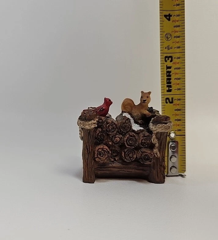 This adorable resin woodpile scene adds such cozy charm to my Christmas village! The lifelike details—the little cardinal, playful squirrel, and stacked logs—create a perfect winter woodland vibe. It’s sturdy, well-painted, and fits right in with my other holiday decor. A must-have for anyone who loves festive miniature scenes!