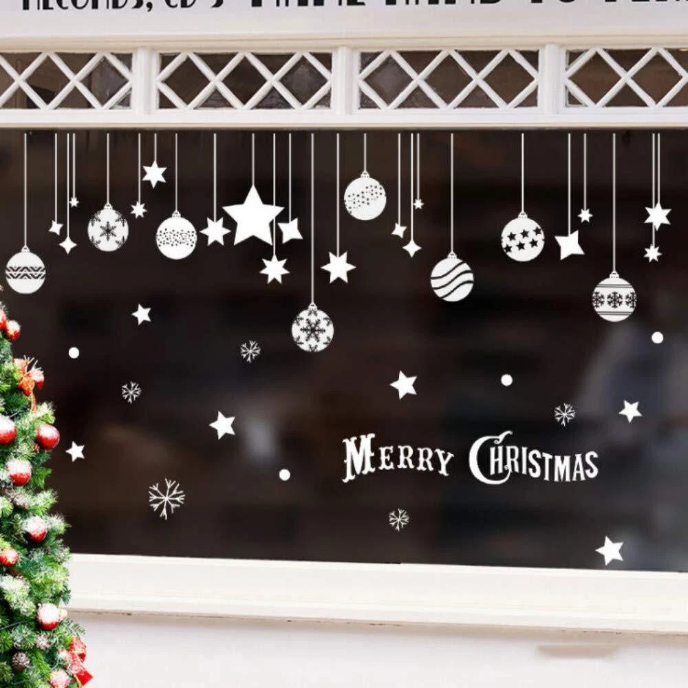 Item Features Removable wall decals are made of environment friendly material. Easy to peel and stick, can be removed in seconds without damaging your walls. Works great for home, Store,office or nursery kid's room decorations. Our wall stickers are well designed in different patterns, check out our store for more wall decals. We hope you enjoy your product and share with us your creations and innovations. Notes and Instructions 1.Before Pasting, pls release it and keep flatting 1 days, until the stickers is restored flatting, and then paste, to avoid curling edge peeling. 2.Please clean the surface with a cloth and let it dry before apply. 3.Please apply wall decals to Dry Smooth Surfaces,like clean smooth wall, glass, ceramic tiles and metal. 4.Don't apply to unfinished surfaces as they can render the adhesive ineffective very quickly and cause the wall to peel off. 5.Please press the decals firmly onto the wall. They leave no sticker remnants. About Customer Service provide free lifetime technical support.Unconditional 30-Day replacement or refund.24-Month worry-free warranty. Any problem please feel free to contact us and we will solve your issue immediately. Specifications Material: PVC Color:White Reference Size: 110cm*67cm/43.3*26.3inch Product Size: 60*45cm/23.6*17.7inch Weight: 100g Package includes 1 X Christmas Window Decal 【Quality Materlal】: All our wall decal made of long lasting, highly quality, waterproof, and durable vinyl that completely meet the standards.Environment-friendly, Non-toxic , Non-fading, Waterproof, Also safe for children. 【Easy Installation】: Easy to peel and stick PVC decals, simple steps to install the stickers on the wall without mess.They're reusable so you can peel off them and save for each year! Just save the backing they came on and store them flat and in a cool place. 【Application Surface】: Can be applied to any smooth and clean surfaces such as walls, doors, windows, closet, etc 【About Size】: Can be adjusted as preference. There are sizes in the picture, please look at the size and buy again, thank you. 【Christmas Decorations】: Unique Christmas Decoration Idea Wall Sticker Design. Stars Snowflakes Bells Hanging Party Ornaments Exquisite Balls Decorations Pendant. They will spend a happy Christmas with you.