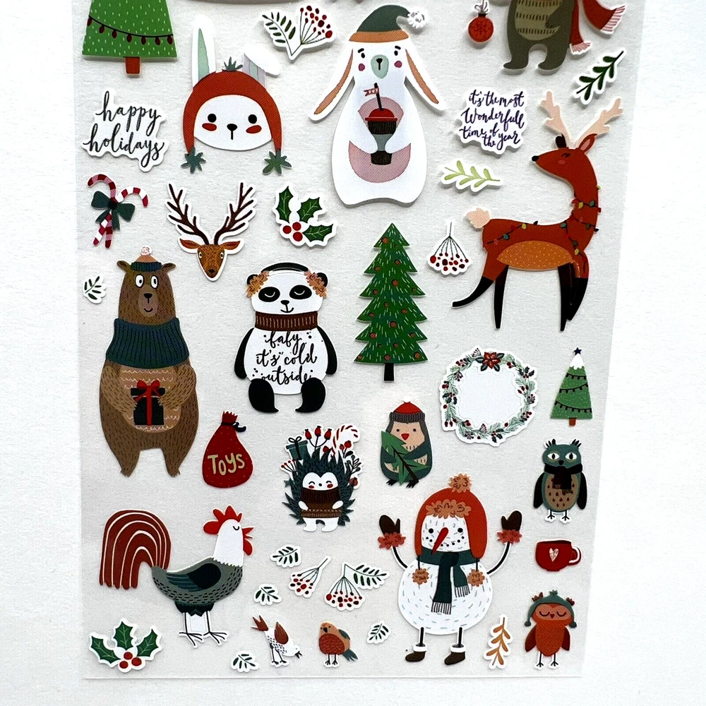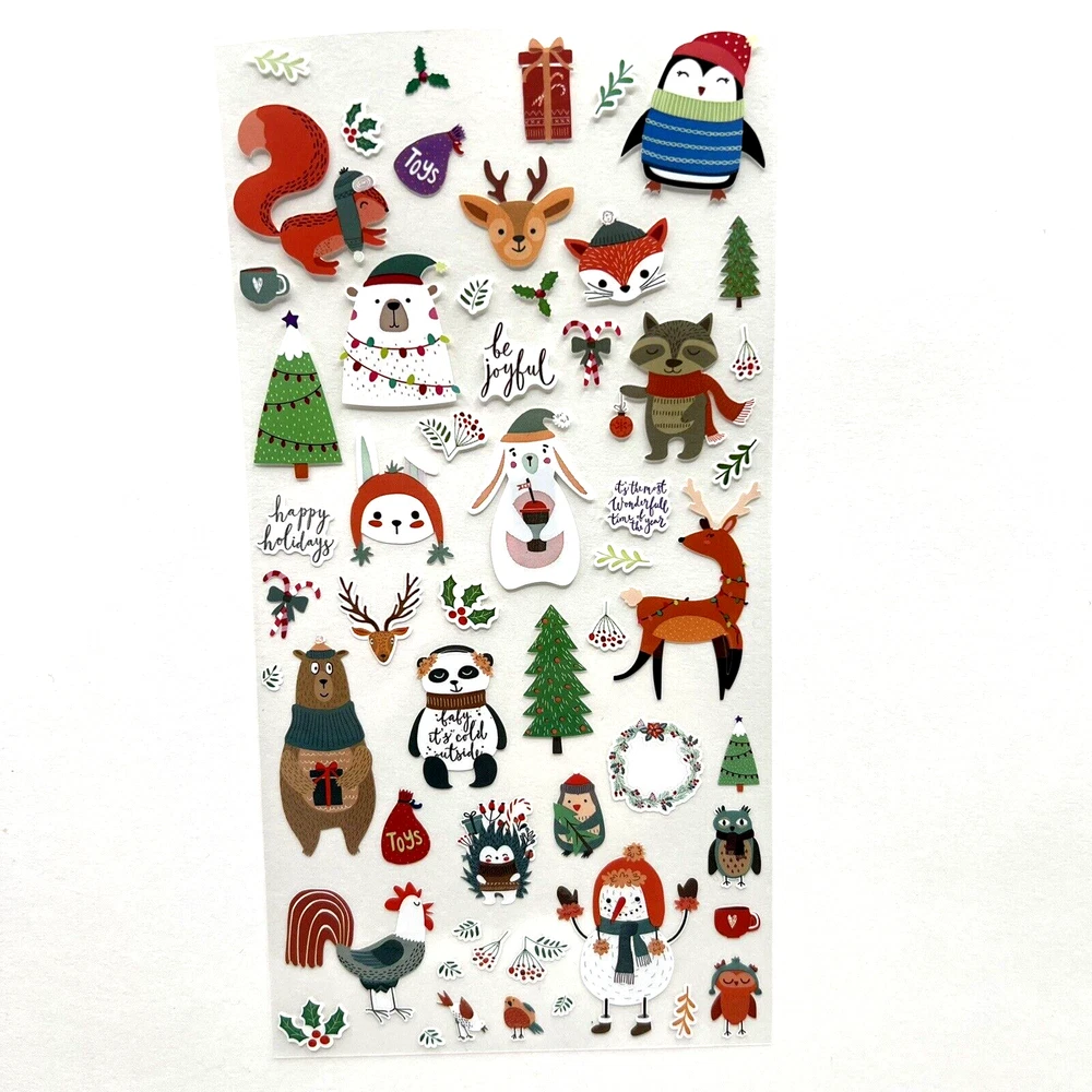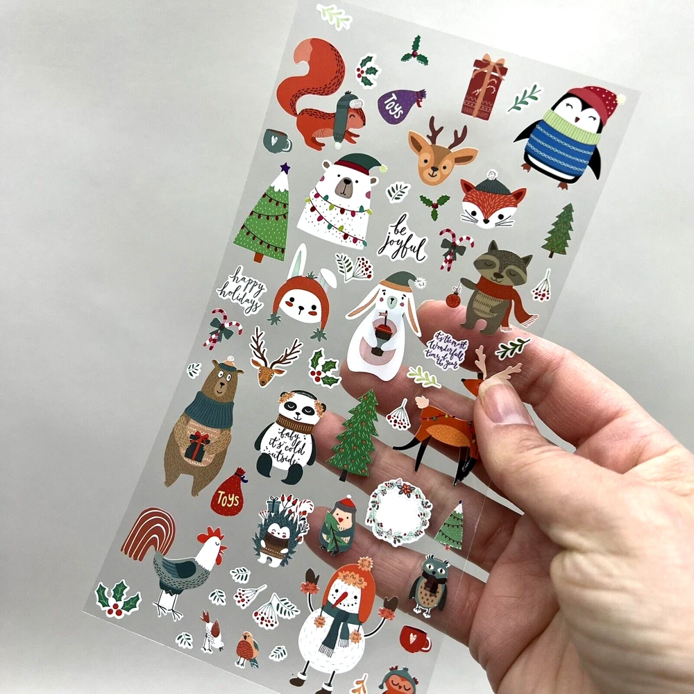 Christmas Winter Animals Sticker Sheet Planner Scrapbooking Journaling Cards