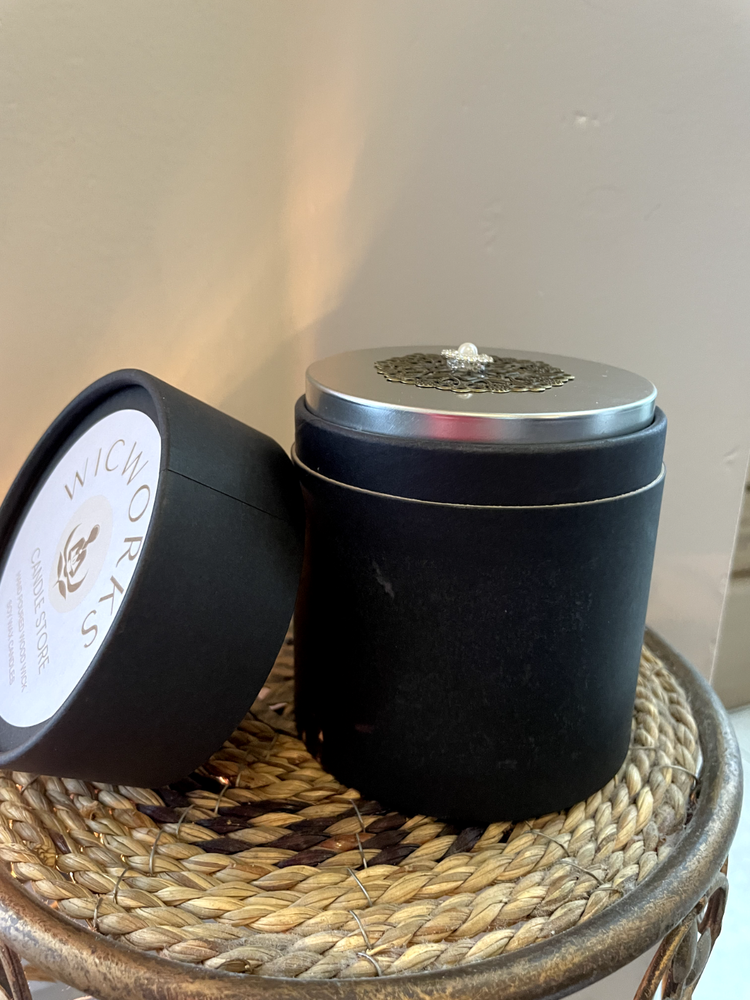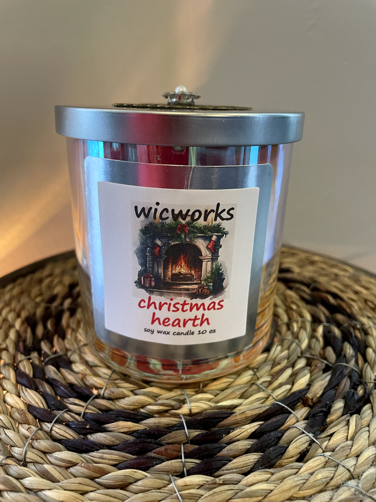 Christmas Hearth is a warm inviting fragrance that captures the essence of the holiday season. It blends notes of fresh fir, pine and cedarwood with hints of smokey embers and earthy cloves evoking the cozy atmosphere of sitting by a crackling fireplace. Great for the holiday season. Handmade highly scented soy wax candle with all natural ingredients, no artificial fragrances or dyes. All candles are made to order. Burn time is more than 40 hours. Comes in a beautiful prism glass candle jar with a silver metal decorated lid great for any decor. Candle measures 3 1/4 inch diameter and is 3 3/4 inches tall with lid. Comes in a stylish black tube container as a gift box. Made with a wood wick that burns cleaner and longer, sounds like a crackling fire. Please use caution when burning candle, keep out of reach of children and away from drafts. After burning, trim wick to 1/4 inch. If you have and problems or questions, please contact me via Ebay, Thank you.