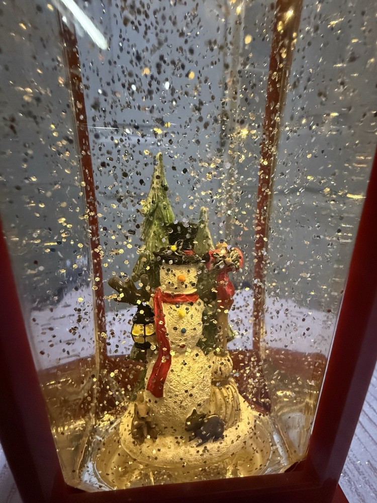This Christmas snow globe lantern features a charming snowman inside a red lantern frame, creating a festive atmosphere in any room. The lantern is free-standing and requires no additional parts for use, making it easy to place in any space. Powered by AA batteries, the LED lighting technology and musical features add an extra touch of magic to your holiday decor. Easy to clean with a damp cloth, this snow globe lantern is a delightful addition to your Christmas celebrations.