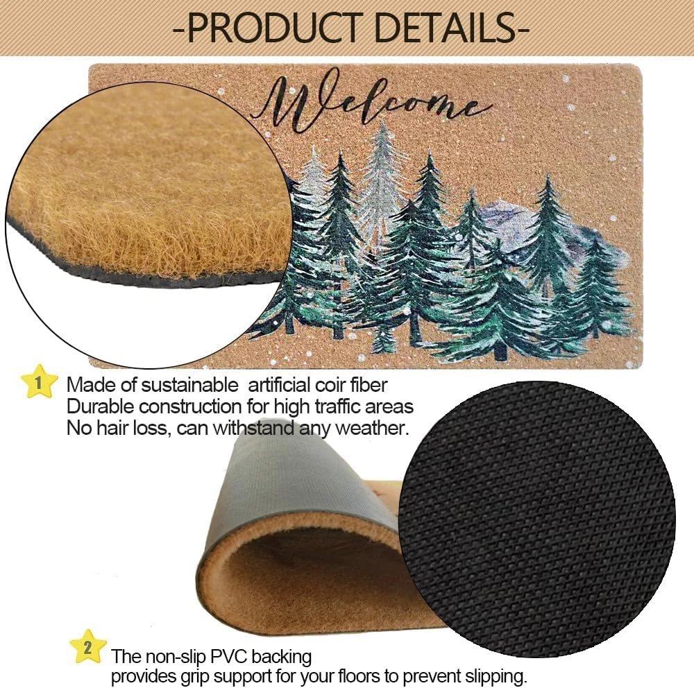 Store New Arrivals Add to Favorite View Feedback Contact Fast deliveries to the customer's home Quality customer service John Make the customers happy! Christmas-Welcome Door-Mats Coir-Doormats - Non-Slip Front Door Mat Seasonal Winter Christmas Holiday Doormat for Indoor Outdoor Entrance Decor 17 X 29 Inch Description The Christmas decorative welcome doormat is made of sythetic coir, which is reliable and sturdy, no shedding, can withstand high-traffic areas. Cute Christmas theme design of welcome mat bring festive spirit into your house. Christmas mats for front door are reliable and pet friendly. The tightly woven coir traps dirt, debris and moisture while updating your front door. Christmas door mats size is 17" x 29". The thickness of the pile is 0.4 inch. The non-slip PVC backing provides grip support for your floors to prevent slipping. Christmas welcome door mat for indoor outdoor entrance can be a great addition to any home. Welcome your guests and family with this Christmas front door mats. Easy to clean: shake off the dirt from the doormat or use a vacuum cleaner and rinse the entrance mat with a hose. Christmas welcome mat will add a beautiful touch to your front door, porch, patio, garage, garden, balcony, farmhouse. Instantly transform your home into elegance. Designed specifically for indoor and outdoor use, it's the perfect choice for any room or entryway in the home. This Christmas mat decorative holiday doormat for entrance is a great gift for family and friends. Style Farmhouse Weave Type Machine Made Pattern Leaf Is Electric No Is Stain Resistant No Theme Christmas Number of Pieces 1 Is Autographed No Material Artificial coir Age Range (Description) Adult Rug Form Type Doormat Item Thickness 0.5 Inches Room Type Hallway Item Weight 3 Kilograms Pile Height 0.4” Construction Type Machine Made Special Feature Non Slip Color Snowflake Pine Tree Shape Rectangular Back Material Type Polyvinyl Chloride Product Dimensions 29"L x 17"W Size 17 X 29 Inch ABOUT US We offer the best prices around on high quality products. Our E-store includes media such as books, movies, music and games while offering electronics, toys, sporting apparel, clothing, tools, general home, garden items and more. SHIPPING We are always working hard to ensure your package arrives as soon as possible. Please understand that some factors like weather, high postal traffic, and the performance of shipping companies are outside of our control. We offer free shipping to the lower 48 states and ship within 2 business days of payment, usually sooner. We do not accept P.O. Boxes. Please provide a physical address. For shipping outside of the continental USA, we only use eBay's Global Shipping Program. The item is shipped to KY and then sent to the rest of the world. International customers are responsible for all duties and taxes. Continue to 'check out' to calculate costs for shipping the item to your country. Messages regarding eBay's Global Shipping Program MUST be directed at eBay EXCLUSIVELY. RETURNS We offer a 30-Day Return Policy on items in which you are not completely satisfied with. You have the option of a full-refund or an exchange of the item. No returns are available on items shipped outside of the USA PAYMENT We accept PayPal. CONTACT US This page content is yet to come Please ad us to your favorite seller and visit again later Thank You CUSTOMER SATISFACTION We try our very best to make sure every customer is completely satisfied. If there's a problem, message us! We're happy to help. WE ACCEPT