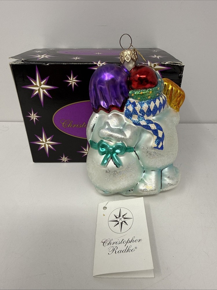 Origin: Poland Recipient: Does not apply Time Period Manufactured: 2000-2009 Character: Snowman Family Subject: Winter Portrait Gem Handmade: Yes Occasion: Christmas Production Technique: Hand Blown Glass Shape: Man Number of Items: 1 Brand: Christopher Radko Age Level: Over 18 Years UPC: 645001198136 Item Weight: Does not apply Style: Mid-Century Modern Product Line: Radko Antique: No Theme: Christmas California Prop 65 Warning: Does not apply Original/Licensed Reproduction: Original Size: Small Franchise: Radko Item Width: Does not apply MPN: Does not apply Type: Ornament Material: Glass Custom Bundle: No Item Length: Does not apply Production Style: Art Glass Pattern: Easter Eggs Set Includes: Ornament Vintage: Yes gtin13: 645001198136 Year Manufactured: 2001 Item Height: 3 in Color: Multicolor Department: Adult Country of Origin: Poland Features: Vintage Collection: Ornaments