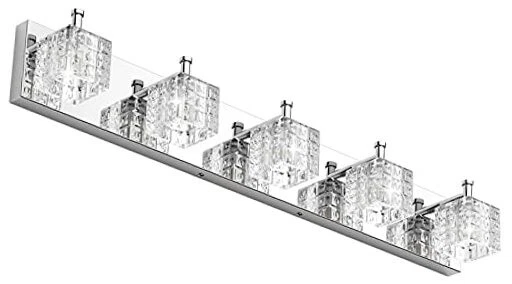 Shade Material: crystal glass Light fixture form: Vanity Item Length: 1 UPC: Does Not Apply Assembly Required: Yes Brand: Does Not Apply Room Type: Bathroom Style: Modern MPN: Does Not Apply Finish types: Chrome Shade Color: transparent crystal glass Material: Stainless Steel Special Feature: Dimmable Special Features: Dimmable Mounting Type: Wall Mount Included Components: Mounting Hardware, Unassembled Light Fixture Parts Light Source Type: LED Power Source: AC Number of Items: 1 Color: Chrome Item Weight: 9.33 pounds Item Height: 1 gtin13: Does Not Apply Finish Type: Chrome Item Width: 1 Product Dimensions: 32"L x 4"W x 4"H Installation Type: Surface Mount Embellishment: Crystal Item model number: Does Not Apply Shape: Rectangular Control Method: Touch EAN: Does Not Apply Recommended Uses For Product: Bathroom Manufacturer: Does Not Apply Theme: Modern Type: Does Not Apply Voltage: 110 Volts Number of Light Sources: 5 Lighting Method: Adjustable Bulb Base: G9 Specific Uses For Product: Indoor use only Fixture Type: Non Removable Unit Count: 1.0 Count Indoor Outdoor Usage: Indoor