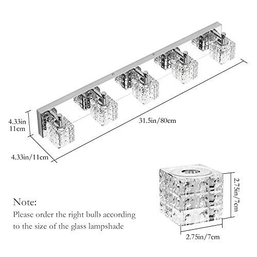 Menu 1. We require immediate payment. 2. We currently accept payment via eBay managed payments only. 3. Once payment is cleared, we will dispatch your shipment within 1-3 business days. Please refer to the "Shipping" tab for more information regarding shipping speed to your destination. Chrome Bathroom Vanity Light Fixtures Crystal 5 Lights Modern LED Chrome Vanity Light Crystal Bathroom Light Fixtures Over Mirror Modern Crystal Vanity Lights Product description 1* G9 LIGHT SOURCE: G9 Bulbs - Suitable for Dimming & Non-Dimming LED G9 bulb. NOTES: G9 bulb & dimmer switch not included. 2* SIZE: Length 31.5 inch*width 4.3 inch, 4.3 inch extend from the wall. 3* HIGH QUALITY: High-quality stainless steel lamp body, smooth as a mirror, not easy to rust and fade, strong corrosion resistance. Premium thick transparent crystal glass cover. It is bright and romantic. 4* EASY TO INSTALL: Hardwired, no switch or plug on the fixture itself. With USA standard Installation back plate. Easy to mounted it on the electric box. Just connect to the reserved wire directly. 5 lights in linear arrangement, only the shades and bulbs need to be assembled. 5* CUSTOMER SERVICE: If t is anything wrong with crystal glass lamp shade, we will send new one to you. please log in to your account, check the order ID and "Contact Seller" to contact us. our customer service will solve your problem within 24 hours, We will try our best to improve your shopping experience. PLEASE MESSAGE US IF YOU HAVE ANY OTHER QUESTIONS, AND MANY THANKS FOR READING ALL OF THIS. Copyright ©#. All Rights Reserved.