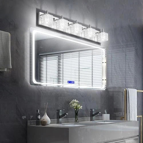 Chrome Bathroom Vanity Light Fixtures Crystal 5 Lights Modern LED Chrome