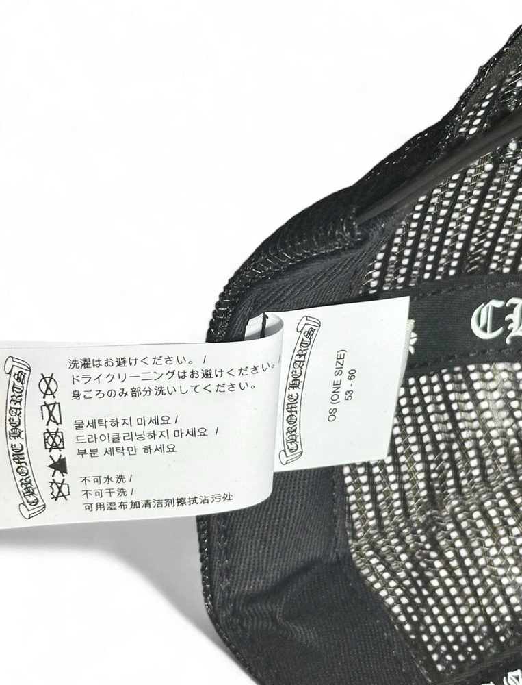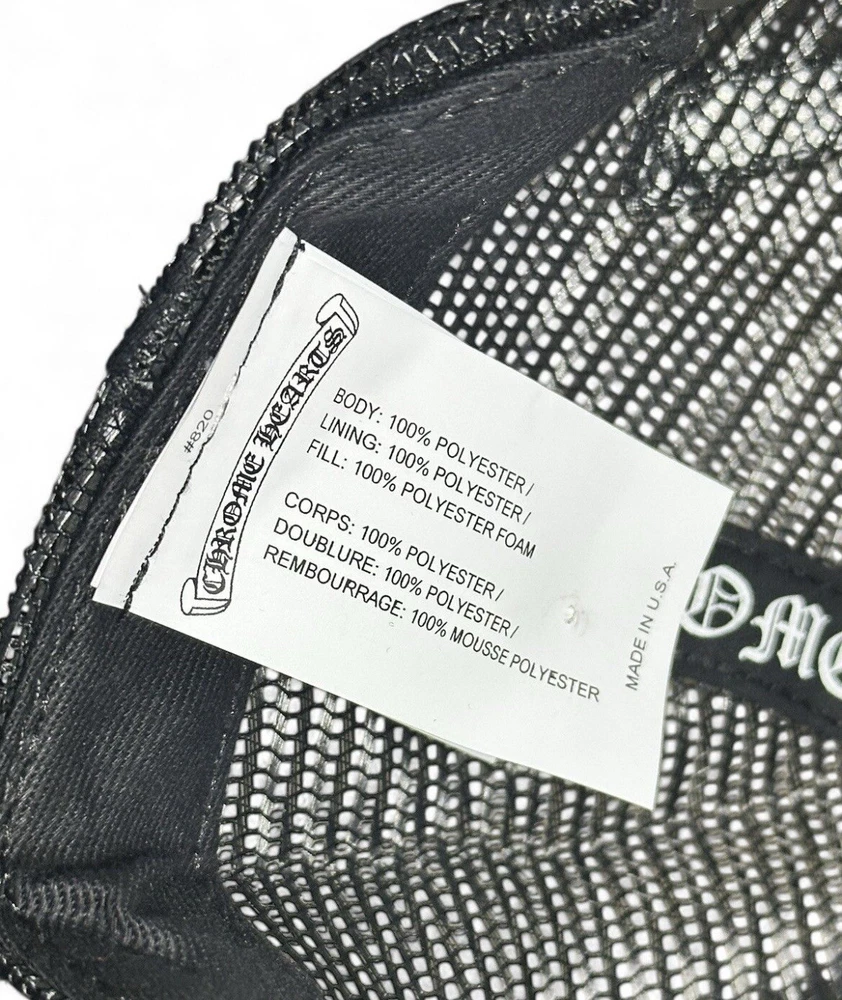 100% Real will ship with original bag and papers from the Chrome Hearts Malibu store This Chrome Hearts hat is a must-have for any fashion-forward man. The hat features an adjustable strap for a comfortable fit and is designed with a sleek black color that is perfect for any outfit. The trucker hat style is perfect for a casual day out, and the designer theme showcases the quality of the Chrome Hearts brand.