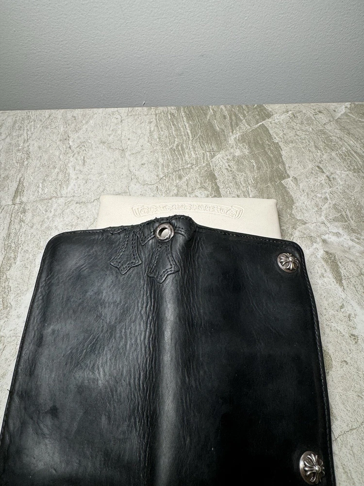 Chrome Hearts Cross Patch Wallet Size: OS Condition: Used Just oiled and cleaned up Rare cross patches Has a wallet chain ring Please message if you want to see more pictures! Ask questions before buying