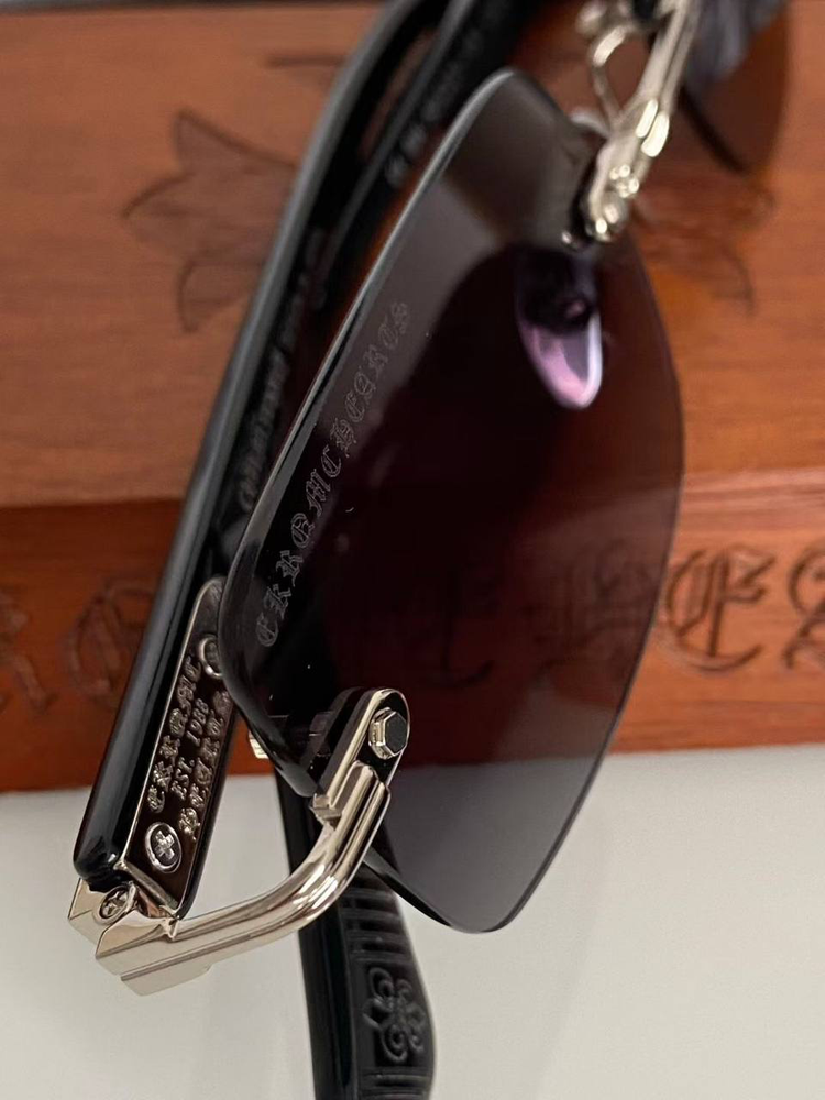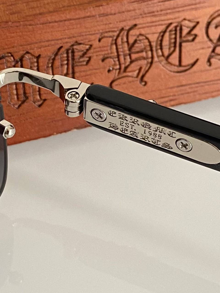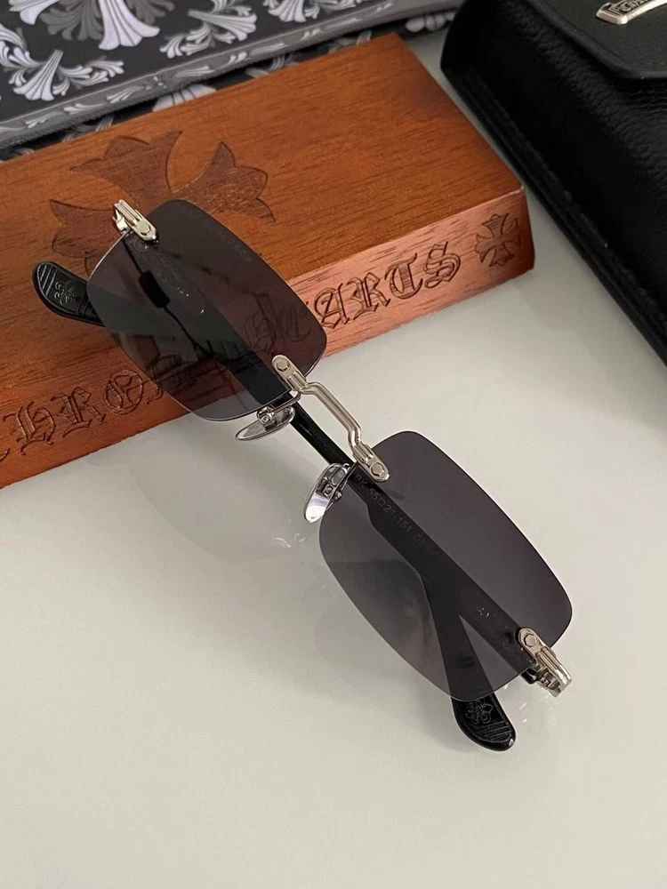 The Chrome Hearts DEEP II Sunglasses in Black with a Silver Rimless Square design exude luxury street style. Made for men, these sunglasses feature glass lenses for added durability and protection against the sun. The sleek silver frame adds a touch of sophistication to any outfit, making them a stylish accessory for everyday wear. The iconic Chrome Hearts brand ensures high quality and a trendy design that is sure to make a statement.