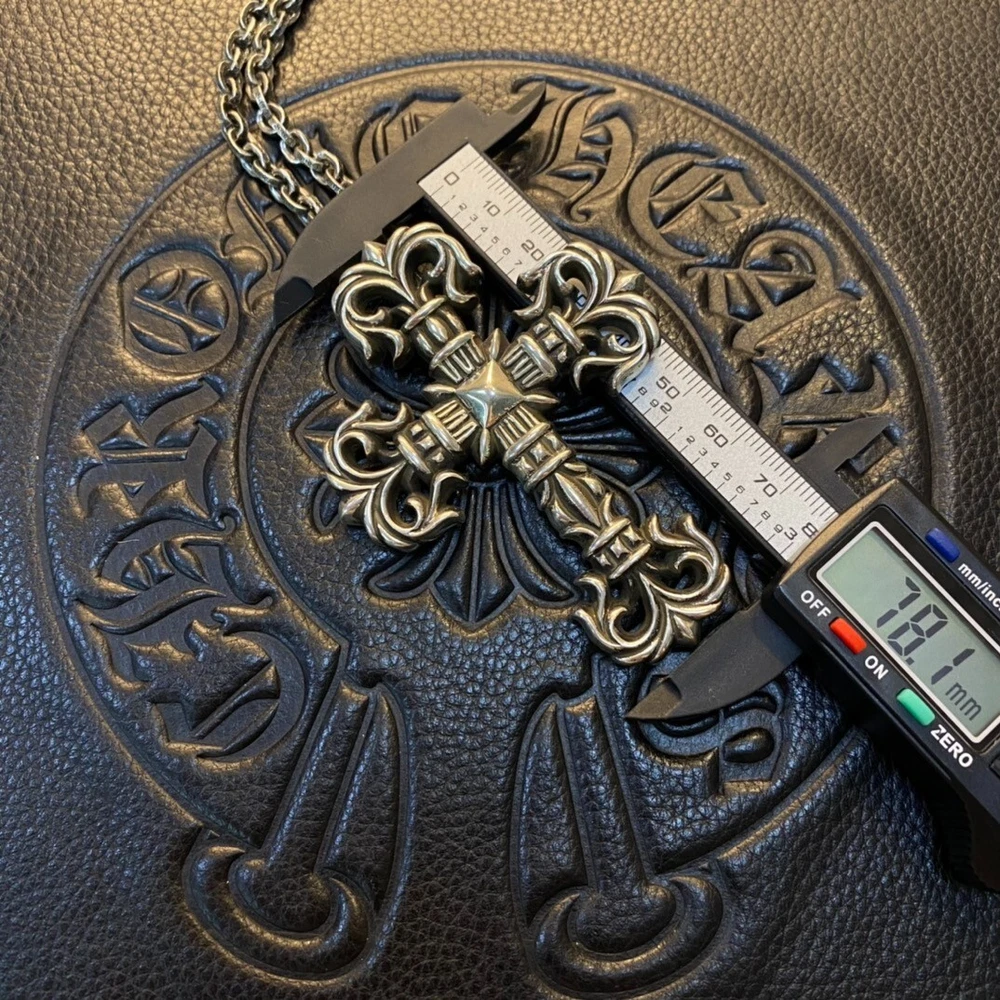 Chrome Hearts Sterling Silver large flame-cross pendant Separate pendant, not including necklace. No boxes, no dust bags.