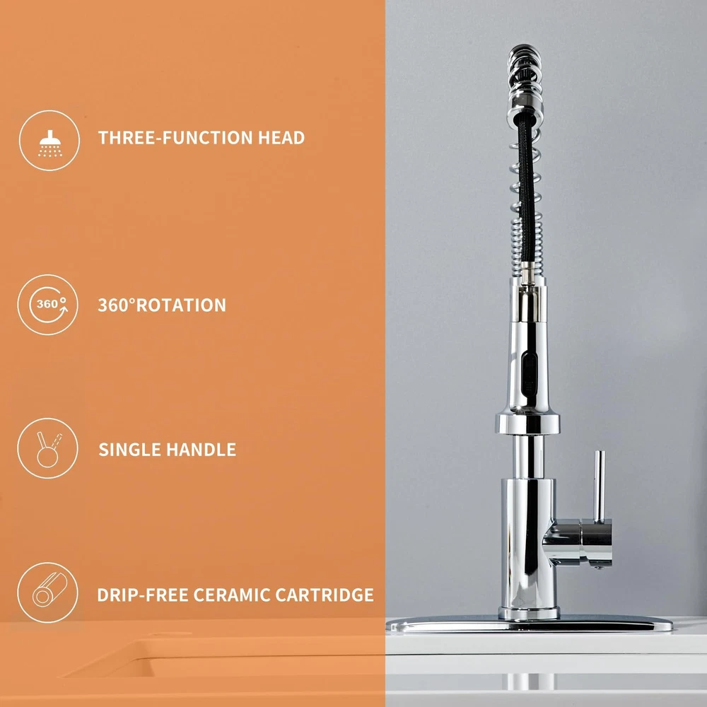 Pull down kitchen faucet has been made of premium SUS304 stainless steel without LEAD, which could provide reliable protection for water health together with the PEX inner hose. 【Stainless Steel Sink Faucet】:Pull down kitchen faucet has been made of premium SUS304 stainless steel without LEAD, which could provide reliable protection for water health together with the PEX inner hose. 【's Upgraded 4.0】:Drip-free ceramic disc mixing valve cartridge Technology utilizes a ceramic disc valve with a real diamond coating to produce a faucet that will last up to 5 million uses. That's an amazing 10 times the industry standard, guaranteeing a lifetime of leak-free, trouble-free performance. 【360 Degrees】:Sprayer features push button controls to move from an aerated stream to a powerful spray, Pause button able to stop the flow of water from the spray head without turning off the faucet, Spout swivels 360 degrees to cover the entire sink. if you prefer a clean sink deck without a sidespray or additional accessories, a pull out faucet may be the right solution. 【Dual Water Modes】:This kitchen faucet with sprayer features with 2 kinds of water modes in order to meet your daily cleaning needs, one is spray mode to rinse the dishes and sink for large area, and the other is stream mode for filling water accurately and quickly into the container without sputtering. 【Design for Your Kitchen】:This RV kitchen faucet features with clean lines and sleek looks will perfectly fit your kitchen, which can make your kitchen look very clean and comfortable. Please feel free to contact us if you have any other questions.