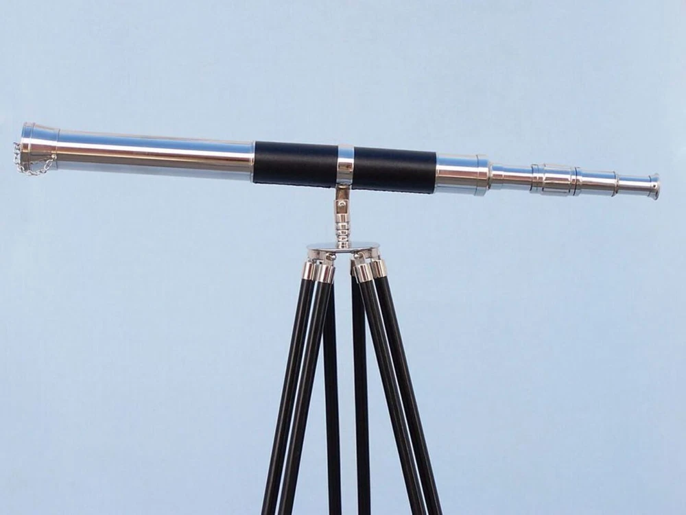 Admirals Floor Standing Chrome with Leather Telescope 60" Free USA Shipping Overall Dimensions 32" L x 25" W x 60" H This Hampton Nautical Admiral's Floor Standing Chrome with Leather Telescope 60" is a beautiful, 100% chrome, refractor telescope mounted on a wooden tripod. The perfect gift for the nautical explorer, this telescope is a fully functioning nautical masterpiece that adds class and sophistication to any room. The main scope is polished chrome wrapped in leather, which shines beautifully when placed in the sunlight. Focusing is accomplished by adjusting the eyepiece ring on the telescope tube, with up to 15x magnification. A removable chrome cap, connected by a chain, protects the objective lens. The wooden tripod stand features smooth, polished round legs, each with chrome fittings and a screw release to let you adjust the height. A chrome chain holds the three wooden legs together to maintain the telescope's position. 15X Magnification Polished chrome telescope body; leather wrapped Glass optics for a clear view (not plastic lenses) Fully functional telescope focuses and magnifies Sturdy wooden tripod supports telescope when standing Admirals Floor Standing Chrome with Leather Telescope 60" Free USA Shipping Overall Dimensions 32" L x 25" W x 60" H This Hampton Nautical Admiral's Floor Standing Chrome with Leather Telescope 60" is a beautiful, 100% chrome, refractor telescope mounted on a wooden tripod. The perfect gift for the nautical explorer, this telescope is a fully functioning nautical masterpiece that adds class and sophistication to any room. The main scope is polished chrome wrapped in leather, which shines beautifully when placed in the sunlight. Focusing is accomplished by adjusting the eyepiece ring on the telescope tube, with up to 15x magnification. A removable chrome cap, connected by a chain, protects the objective lens. The wooden tripod stand features smooth, polished round legs, each with chrome fittings and a screw release to let you adjust the height. A chrome chain holds the three wooden legs together to maintain the telescope's position. 15X Magnification Polished chrome telescope body; leather wrapped Glass optics for a clear view (not plastic lenses) Fully functional telescope focuses and magnifies Sturdy wooden tripod supports telescope when standing × × × × × × × × × Buy now and save! Shipping info Click the Shipping & Payments tab above the listing description for more info FREE Shipping Click the Shipping & Payments tab above the listing description for more info! Additional delivery notes PICK UP OPTION Sorry, our items are NOT available for pick-up. PAYMENT Immediate payment is required upon selecting "Buy It Now" or upon checking out through the cart. We accept payment via U.S. PayPal accounts and all Major Credit Cards, Debit Cards & Google Pay. We are legally required to collect sales tax in those states and localities where we maintain a physical presence (nexus). The applicable amount of sales tax charged to an order will be calculated based on the shipment destination's state and local sales tax laws. Thank you for shopping with us on eBay! Additional Information No additional information at this time Ask seller a question You might also like FL/AL Small Boat/Kayak: Perdido Bay to Bon Secour Bay-BSP322 Small Shark Identification Chart SK502 Large Fishes of the Gulf of Mexico and Florida Identification Chart-FG504 Large Texas Corpus Christi Bay Area-CC55 Large Contact To contact our Customer Service Team, simply click the button here and our Customer Service team will be happy to assist. Ask seller a question © BC Nautical Shipping & Payments Shipping is FREE for this item Payment Accepted Payment Methods Immediate payment is required upon selecting "Buy It Now" or upon checking out through the cart. We accept payment via U.S. PayPal accounts and all Major Credit Cards, Debit Cards & Google Pay. We are legally required to collect sales tax in those states and localities where we maintain a physical presence (nexus). The applicable amount of sales tax charged to an order will be calculated based on the shipment destination's state and local sales tax laws. Thank you for shopping with us on eBay! Returns Returns are accepted Items must be returned within 14 days of the auction ending Buyer will pay for return shipping. eBay integration by