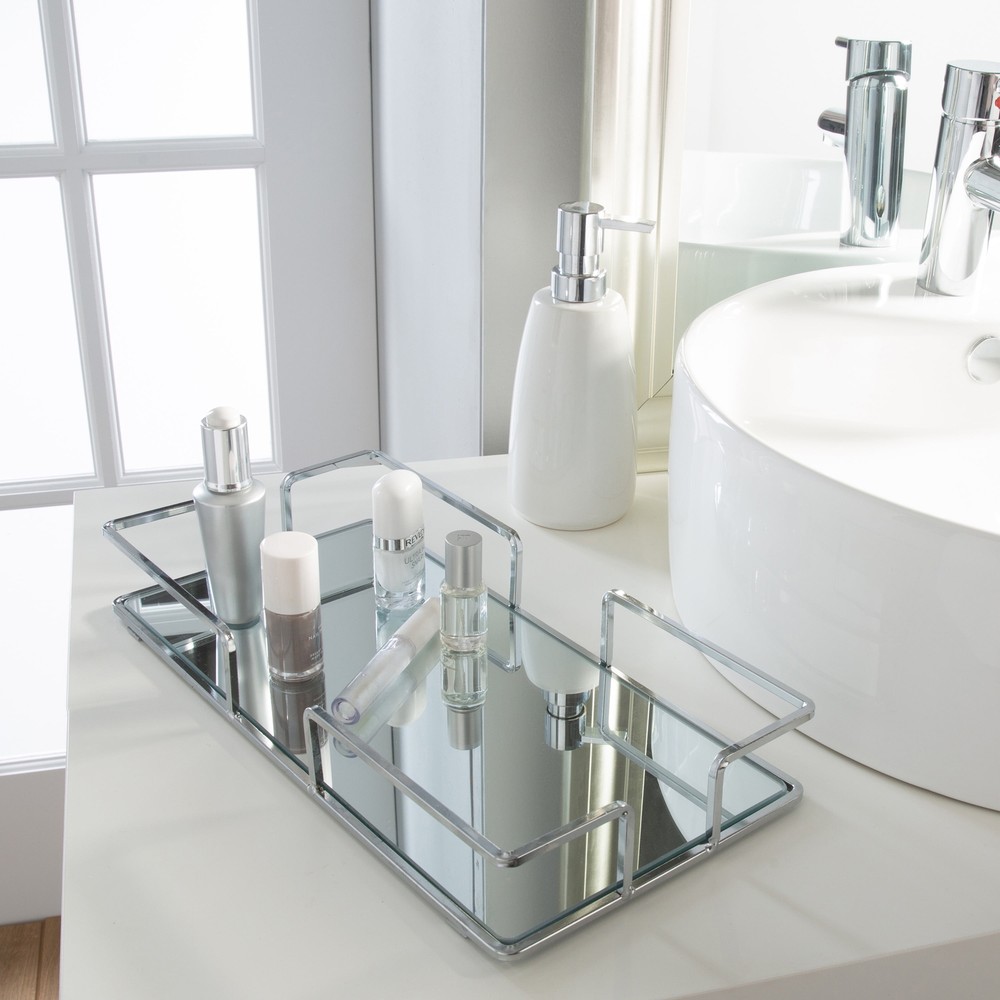 This Home Details Modern Vanity Tray features a chrome finish and an attractive design to add the right touch of elegance to your room. This vanity tray fits easily on a bedroom dresser or bathroom countertop. It is a perfect place to store your perfumes, makeup, jewelry or guest toiletries. This is the perfect vanity tray for your spaces decor. On Jun 15, 2025 at 01:23:10 PDT, seller added the following information: