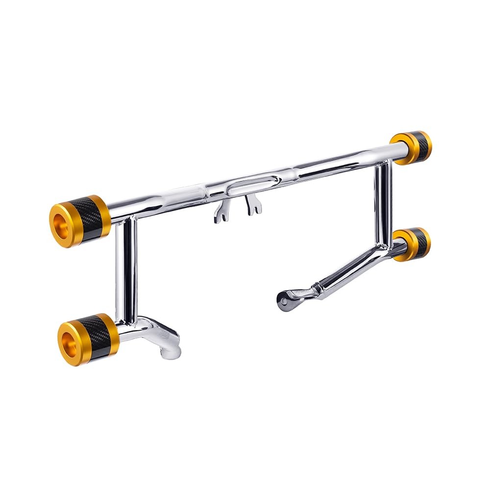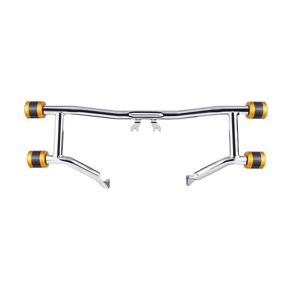 Chrome Protek Front Performance Two-Step Crash Bar Compatible with Harley Touring Street Glide Road Glide Road King Electra Glide 2014-2025 (Gold CNC) About this item 1、Chrome Two-Step – Features a distinctive double-level structure that enhances your bike's style and stance without adding foot pegs. 2、Solid Front-End Protection – Shields your bike's engine and lower frame from impact and tip-over damage during rides or parking incidents. 3、Durable Steel Construction – Made from high-strength steel with a high-gloss chrome finish for long-lasting durability and rust resistance. 4、Easy Bolt-On Installation – Easy Installation with no cutting or drilling needed; all hardware included for a hassle-free setup. 5、Fits 2014-2025 Harley Touring Models – Compatible with Street Glide, Road Glide, Road King, Electra Glide, and other Touring bikes. Product Description Upgrade your Harley Touring bike with the Chrome ProTek Two-Step Crash Bar — a sleek combination of protection, performance, and style. This front crash bar features a dual-level step that adds a bold, aggressive look to your ride while offering practical leg protection. Constructed from heavy-duty steel and finished in premium chrome, it ensures durability and resistance to corrosion. ed to fit 2014-2025 Harley Touring models, this crash bar bolts on easily with no modifications required. On Dec 18, 2025 at 03:39:00 PST, seller added the following information: On Feb 24, 2026 at 00:56:34 PST, seller added the following information:
