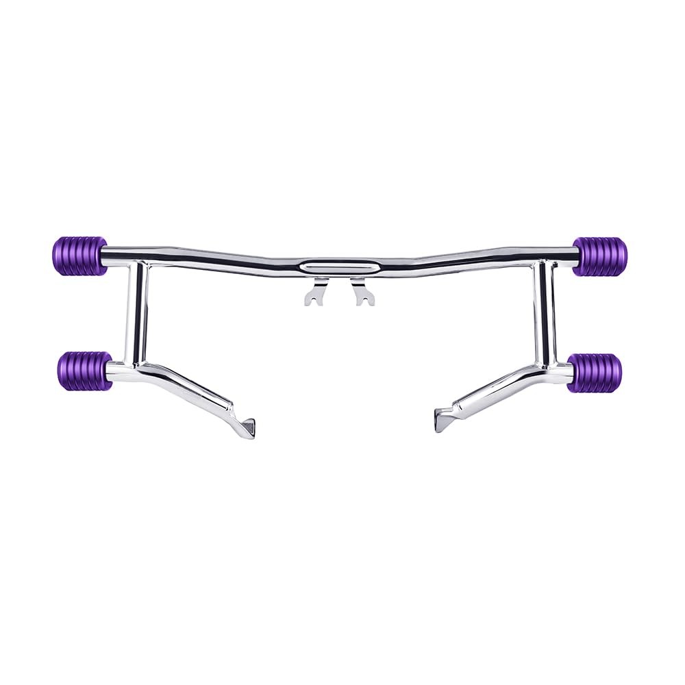 Chrome Protek Front Performance Two-Step Crash Bar Compatible with Harley Touring Street Glide Road Glide Road King Electra Glide 2014-2025 (Purple CNC) About this item 1、Chrome Two-Step – Features a distinctive double-level structure that enhances your bike's style and stance without adding foot pegs. 2、Solid Front-End Protection – Shields your bike's engine and lower frame from impact and tip-over damage during rides or parking incidents. 3、Durable Steel Construction – Made from high-strength steel with a high-gloss chrome finish for long-lasting durability and rust resistance. 4、Easy Bolt-On Installation – Easy Installation with no cutting or drilling needed; all hardware included for a hassle-free setup. 5、Fits 2014-2025 Harley Touring Models – Compatible with Street Glide, Road Glide, Road King, Electra Glide, and other Touring bikes. Product Description Upgrade your Harley Touring bike with the Chrome ProTek Two-Step Crash Bar — a sleek combination of protection, performance, and style. This front crash bar features a dual-level step that adds a bold, aggressive look to your ride while offering practical leg protection. Constructed from heavy-duty steel and finished in premium chrome, it ensures durability and resistance to corrosion. ed to fit 2014-2025 Harley Touring models, this crash bar bolts on easily with no modifications required. On Dec 18, 2025 at 03:54:35 PST, seller added the following information: