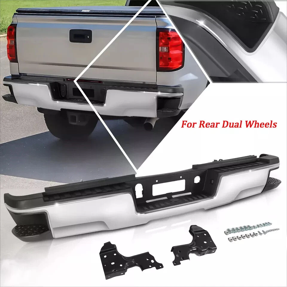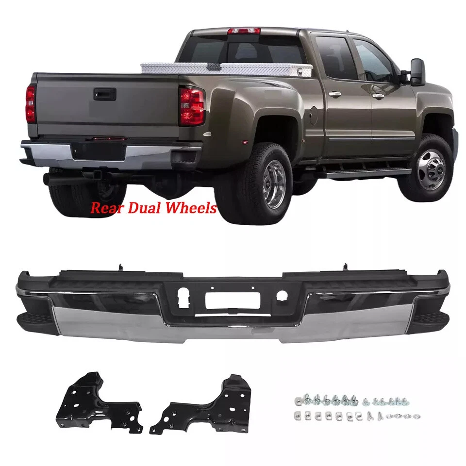 Fitment 2015-2019 Chevrolet Silverado 2500 HD 2015-2019 Chevrolet Silverado 3500 HD 2015-2019 GMC Sierra 2500 HD 2015-2019 GMC Sierra 3500 HD For Dual Rear Wheel (Dually) Models ONLY For Models Without Park Sensors For Use With Factory Tow Hitch (Hitch Plate Not Included) Details Surface Finish:Chrome Material:Steel Includes Reinforcement, Brackets, Hardware, Lamps and Step Pad Direct OE Replacement Package Includes: 1*Rear Bumper Assembly On Dec 12, 2024 at 17:05:25 PST, seller added the following information: On Dec 18, 2024 at 18:21:58 PST, seller added the following information: On Dec 19, 2024 at 09:45:51 PST, seller added the following information:
