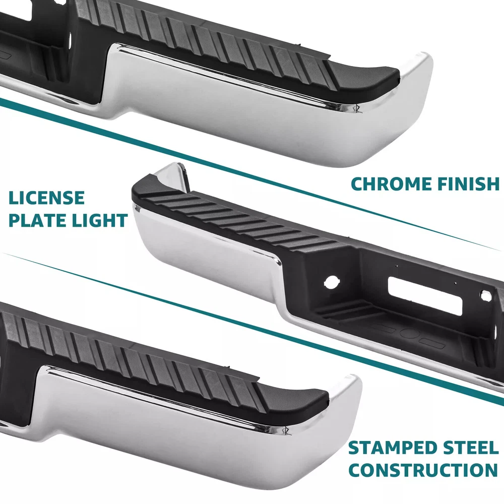 Compatible with: For 2005 F-150 King Ranch For 2004-2005 F-150 (submodel: Lariat, XL) For 2006 F-150 (submodel: Harley-Davidson Edition, King Ranch, Lariat, XL) , Production Date To August 8 2005 Bed Type:Fleetside/Styleside Material:Steel Notice:Not fit FLARSIDE (SUPER CREW) Model Partslink Number: FO1103118, FO1103126 Finish:Chrome Package Include: 1×Rear Bumper 2×Brackets 1×Bag of Installation Accessories On Dec 29, 2024 at 20:41:48 PST, seller added the following information: