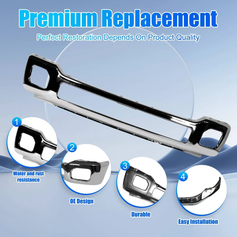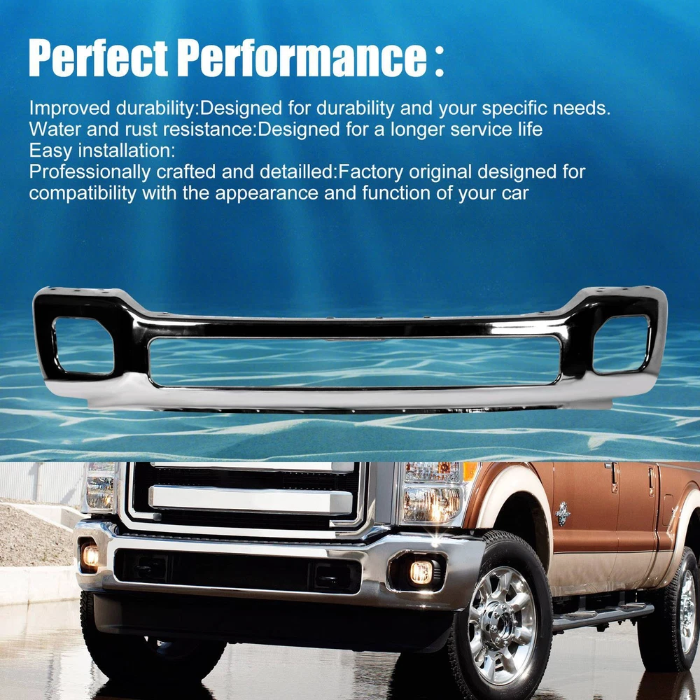 Specification Color: Chrome Air Intakes: YES Finish: Chrome Installation Instruction: Not Included Manufacturer Warranty: 1 Year Condition: New Items Included: Face Bar Interchange Part Number: FO1002416 OE/OEM Part Number: BC3Z17757B Fitment Type: Vehicle Specific Placement on Vehicle: Front Type: Front Bumper Material: Steel Fog light holes: WITH FOG LIGHT HOLES Fitment 2011-2016 Ford F-350 Super Duty 2011-2016 Ford F-250 Super Duty Features & Benefits 1. Solid Construction Design - Made of heavy-duty steel and high grade PP to ensure an extremely long-lasting performance in outdoor conditions. 2. OEM Characteristic - Made to exact factory specifications and designed specifically for your vehicle for optimal convenience and functionality. 3. Quick and Easy to install - OE fitment and replacement for factory unit, fast installation without any drilling or modification. Instruction is not included. Professional installation is highly recommended. 4. SUV/Car/Truck front bumpers protect your car from rocks, tree roots and other obstacles. Save your a big fix fee in the body shop. Note: Only sold in the USA (Excluding Hawaii, Alaska, Puerto Rico, Guam, Virgin Islands, American Samoa, Northern Mariana Islands, Palau, Federated States of Micronesia, Marshall Islands, AA, AE, AP). Warranty: If there's any problem, please feel free to contact us with your car's VIN # and the pictures or videos to show the problem within 30 days, we’ll try our best to solve it and make you satisfied. After using, the item’s warranty is 1 year, only for replacement and no refund. Hope you know.