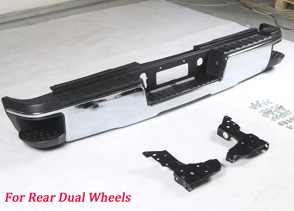 Fitment 2015-2019 Chevrolet Silverado 2500 HD 2015-2019 Chevrolet Silverado 3500 HD 2015-2019 GMC Sierra 2500 HD 2015-2019 GMC Sierra 3500 HD For Dual Rear Wheel (Dually) Models ONLY For Models Without Park Sensors For Use With Factory Tow Hitch (Hitch Plate Not Included) Details Surface Finish:Chrome Material:Steel Includes Reinforcement, Brackets, Hardware, Lamps and Step Pad Direct OE Replacement Package Includes: 1*Rear Bumper Assembly On Dec 12, 2024 at 17:05:25 PST, seller added the following information: On Dec 18, 2024 at 20:03:28 PST, seller added the following information: On Dec 22, 2024 at 18:24:32 PST, seller added the following information: On Dec 22, 2024 at 22:28:55 PST, seller added the following information: