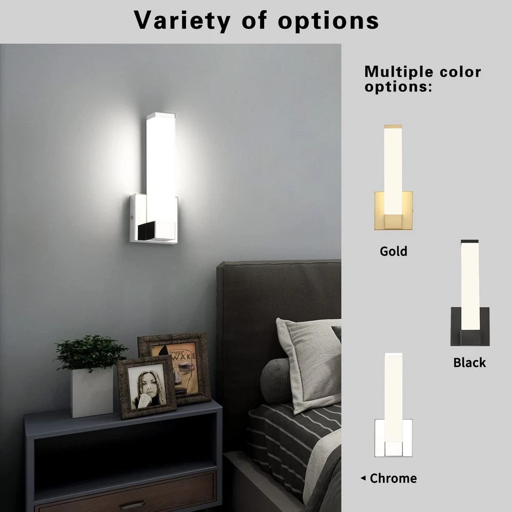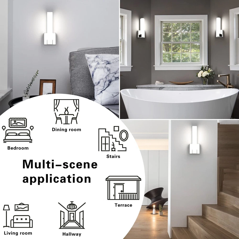 Chrome Wall Lights for Bedroom Modern Indoor LED Hallway Sconces Corner Light 12" Inch Height 12W 4000K Bedside Stair Sconces Wall Lighting Lamps 110V AC Product Details Color: Chrome-Not Dimmable Brand: 7Degobii MPN: 1710-CH-12W-4000K UPC: 788362403614 EAN: 0788362403614 Brand: 7Degobii Color: Chrome-Not Dimmable Material: Aluminum, Metal, Acrylic Style: Modern Light fixture form: Sconce Brand: 7Degobii Color: Chrome-Not Dimmable Material: Aluminum, Metal, Acrylic Style: Modern Light fixture form: Sconce Room Type: Bedroom, Hallway Product Dimensions: 11.81"L x 4.33"W x 3.15"H Specific Uses For Product: Balcony Indoor/Outdoor Usage: Indoor Power Source: Corded Electric Installation Type: Wall Mount Special Feature: Dimmable Control Method: Remote Light Source Type: LED Shade Material: Aluminum Number of Light Sources: 1 Voltage: 110 Volts Light Color: Neutral white(4000K) Included Components: LED Lens Lighting Method: LED Item Weight: 1.61 Pounds Number of Items: 1 Wattage: 12 watts Controller Type: Push Button Switch Type: Push Button Unit Count: 1.0 Count Water Resistance Level: Waterproof Brightness: 950 Lumen Efficiency: Energy-efficient Mounting Type: Wall Mount Shade Color: White Fixture Type: Non Removable Assembly Required: No Manufacturer: Bolang UPC: 788362403614 Model Name: 1710-CH-12W-4000K Part Number: 1710-CH-12W-4000K Item Weight: 1.61 pounds Country of Origin: China Item model number: 1710-CH-12W-4000K Size: 12W-4000K Special Features: Dimmable Batteries Included?: No Batteries Required?: No Warranty Description: 2 year manufacturer. Date First Available: February 20, 2023 Modern Design Wall Light: The LED Chrome wall sconce have comfortable color temperature - About 4000K(Natural white), 12Watts, best for bedroom, staircase, balcony, hallway,hotels, etc. Use Quality Materials: The wall lights is made of acrylic and stainless steel housing, modern brief appearance looks more Atmosphere,Chrome wall sconces illuminate the beauty of the room. LED Wall Light: The chrome Wall Sconce with feature of 12W integrated led light source Eqval. to 60W traditional bulb, creates stable and efficient wall light. Easy To Install: Bedroom wall lights bedroom is hardwired and surface mounting, using screws to fix, easy to install by yourself, no need to employ a license electrician. Wall Sconces Size: 11.81" height, distance from the wall:3.15 inch.Built-in LED light source, 12 watts 4000K color temperature. CRI 85.