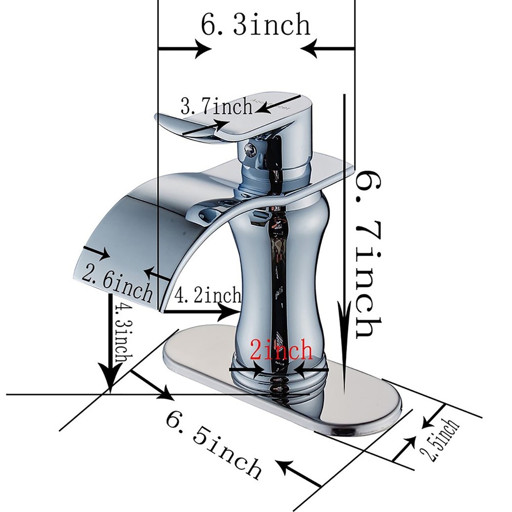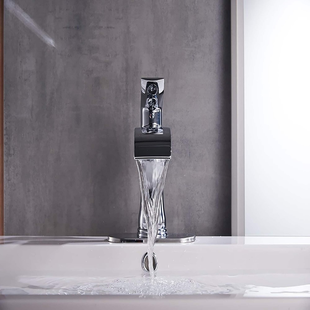 Description:This Chrome Single Hole Faucet Bathroom has a charming contemporary design, elegant metal handles for ease of operation and precise temperature control, this faucet offers outstanding performance.Feature: Compatible with 1 or 3-Hole installation, the deck plate/escutcheon is detachable. Easy Operation: Single lever design for effortless flow and temperature control. Simple, elegant lines complement traditional decor. Solid brass construction ensures quality and reliability. Material: Low Lead Brass ensuring quality and longevity, lead percentage less than 0.25%, comply with NSF61 and NSF372 The faucet was specially designed to fit the sink with a hole diameter of 1"-1.8" An optional deck plate is included for 3-hole installation. Sonterra's classic styling goes a step Free Shipping Over $49.99* Details Chrome Waterfall Single Handle Bathroom Faucet Product Description: Description: This Chrome Single Hole Faucet Bathroom has a charming contemporary design, elegant metal handles for ease of operation and precise temperature control, this faucet offers outstanding performance. Feature: Compatible with 1 or 3-Hole installation, the deck plate/escutcheon is detachable. Easy OperationSingle lever design for effortless flow and temperature control. Simple, elegant lines complement traditional decor. Solid brass construction ensures quality and reliability. MaterialLow Lead Brass ensuring quality and longevity, lead percentage less than 0.25%, comply with NSF61 and NSF372 The faucet was specially designed to fit the sink with a hole diameter of 1"-1.8" An optional deck plate is included for 3-hole installation. Sonterra's classic styling goes a step further with a new finish combination---(6556D) Hose Size:24" Length Faucet Connector, Braided Stainless Steel - 3/8" Female Compression Thread x 1/2" I.P. Female Straight Thread