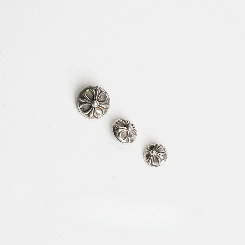 Chrome hearts Cross hand sewn button sterling silver cross jeans accessory Big cross hand stitched buckle 20mm/ single----$199.00 Center cross hand stitched buckle 14.5mm/ single---$159.00 Small cross hand stitched buckle 12.5mm/ single--- 129.00 This price is for large sizes, sold individually! Prices can be modified if other sizes are required Please indicate the size after placing the order, no box, no dust bag