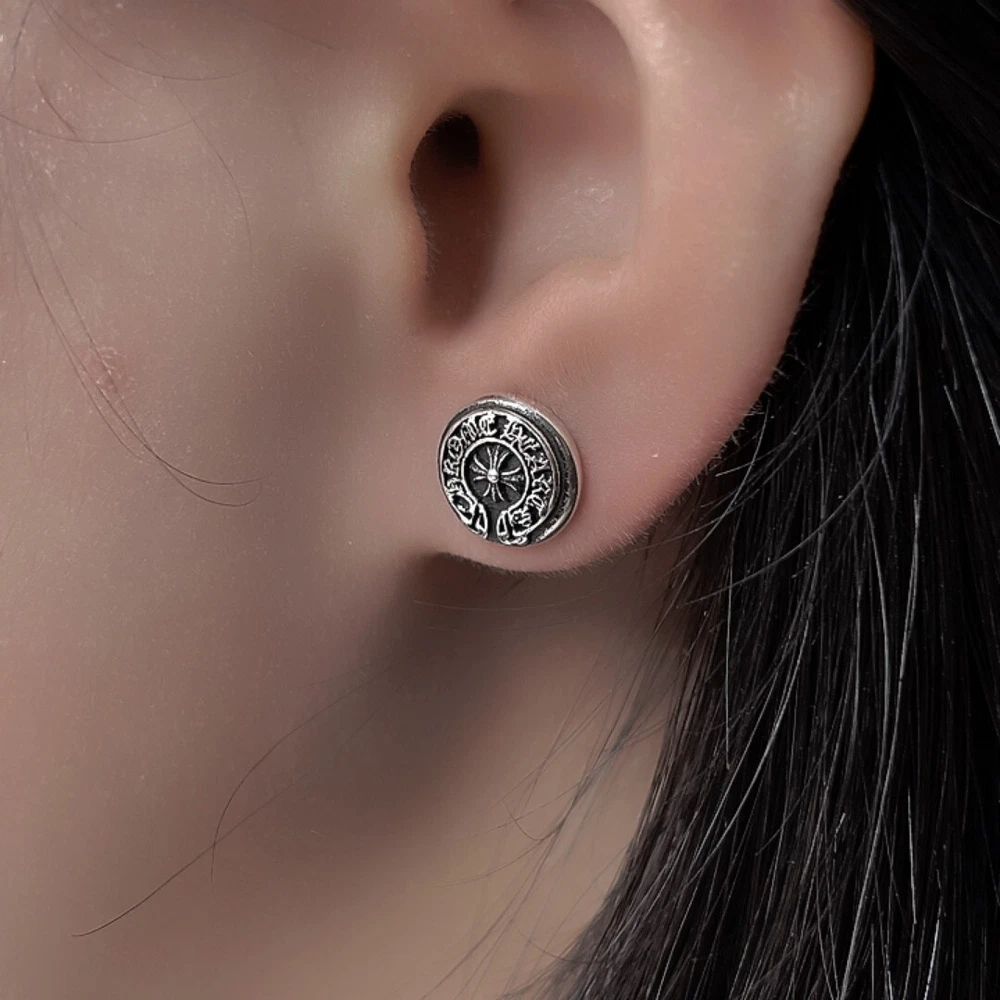 Chrome hearts Sterling Silver Horseshoe logo Cross stud earrings