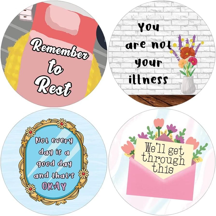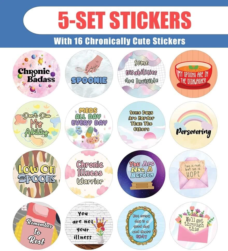 16 UNIQUE DESIGNS INSPIRING STICKERS FOR YOUR DIY PERSONALIZED DECORATIONS - These colorful and uniquely inspiring round shaped stickers are the best tool for DIY decoration and personalization of your belongings. GREAT STOCKING STUFFERS, SCHOOL CORPORATE TEACHING SUPPLEMENTARY MATERIALS, AND INCENTIVE GIFTS - Great rewards giveaways for Boys Girls, Kids, Teens, Children, Adults, Professionals. A perfect design to give during guidance sessions, classroom activities, school giveaways, birthdays, anniversaries, family day, and any other special occasions. MADE WITH DURABLE AND WATERPROOF MATERIALS - There is a lamination or coating to make the stickers high water resistant, and WILL NOT fade from the water. The stickers can stick it anywhere you like, and it sticks there and lasts a long time. A COLORFUL AND DECOR STICKER DECAL - Each sheet with 16 individual round stickers. There are 5 Sheets, with a total of 80 pieces of stickers. STICKER SIZE: 1.5 INCHES IN DIAMETER Chronically Cute Stickers (5 Sets X 16 Designs) COLORFUL AND COLLECTION OF TEXT STICKERS • Well designed. • Very encouraging. • Self-adhesive. Chronically Cute Stickers (5 Sets X 16 Designs) are super fun to collect; you can't have just one! That's why you will find a selection of stickers right here. Each package comes with different stickers in a variety of designs. Stick them here, stick them there, stick them everywhere! Everyone will love these self-adhesive stickers. These colorful stickers are perfect for any adults and these come with very inspiring messages and bright pictures. A fun, inexpensive way to add a decorative, notes, and stationery. Delight yourself with uplifting messages designs that are very encouraging. Chronically Cute Stickers (5 Sets X 16 Designs) perfect for giveaways, behavior incentives, prizes! These stickers are acid-free, nontoxic, and safe for use on photos. This product comes with a 60 days money back guarantee. You can return them to us for a full refund.