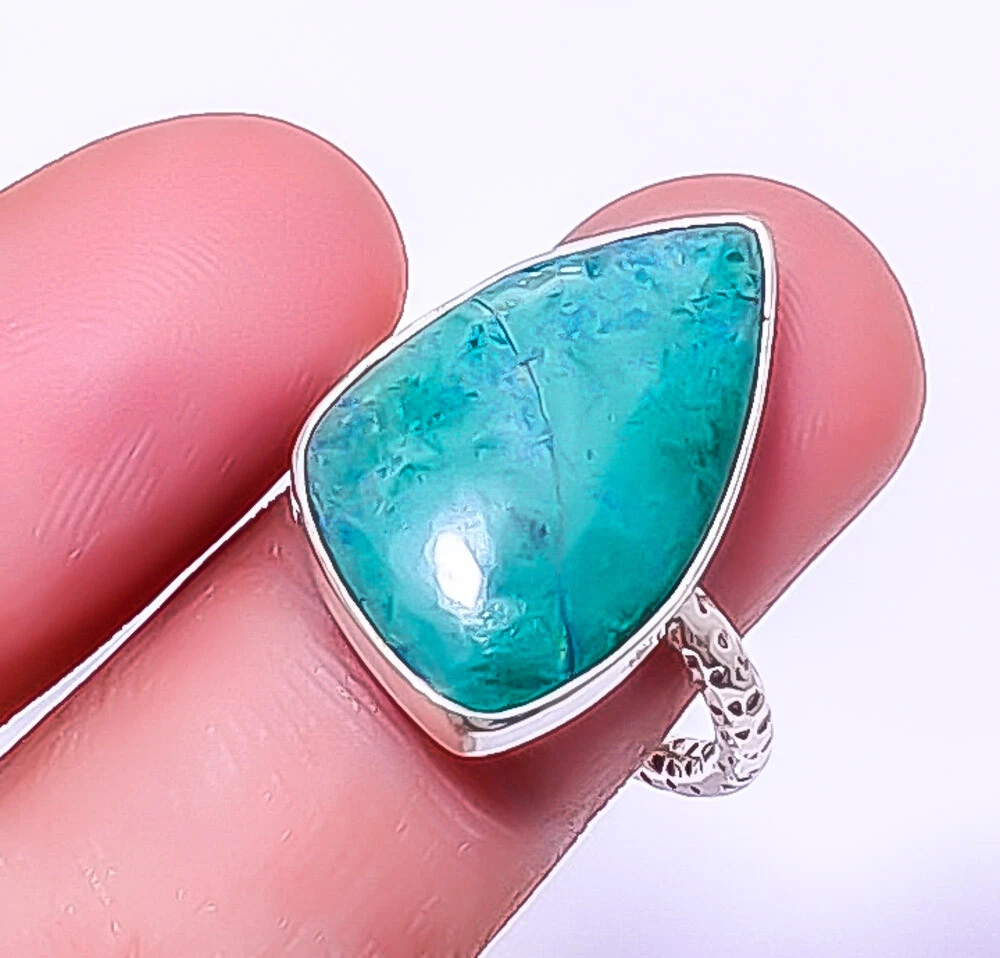 Shape Round Antique Yes Signed Yes Sizable As Seen in Picture Vintage As Seen in Picture Seller Warranty Yes Wholesale Yes SKU RR5824-58 Type Ring Style Full Finger Metal Sterling Silver Metal Purity 925 Parts Per 1000 Base Metal Sterling Silver Main Stone Chrysocolla Main Stone Creation Natural Main Stone Color As Seen in Picture Main Stone Shape As Seen in Picture Main Stone Treatment Natural Total Carat Weight 26.5 ctw Material Gemstone, Stone Setting Style collet setting Brand Unbranded Customized No Country/Region of Manufacture India Country of Origin South Africa Color Silver Ring Size 8.5 Diamond Clarity Grade Not Applicable Number of Diamonds As Seen in Picture Gemstone Clarity Grade Slightly Included Features Engraved, Nickel-Free, Handcrafted Diamond Color Grade Not Applicable Cut Grade Very Good Colored Diamond Intensity Not Applicable Certification 100% Genuine Guaranteed Band Width As Seen in Picture Handmade Yes Theme Beauty, Special Occasion, Halo, Love & Hearts, Luck Occasion Christmas, Birthday, Anniversary, Engagement, Wedding, Valen Shipping & Handling - Charge - 1st item-5.90 And Additional item-1.90 Handling Time - 1 Days . Delivery Time - 2 TO 3 DAYS. Shipping Service - USPS First Class Package 2 -3 Days. Returns - 1.We offer a 100% Money Back Guarantee minus shipping for 30 days after receiving the Item / item's. 2..The item must not be altered or damaged in any way shape or form. 3.Upon receiving these items your payment will be refunded. 4.Email us for return instructions before sending merchandise back. 5.Please allow up to 1 business day for all returns to receive credit. 6.Sizing does not affect the return policy. Payment - We accept PayPal for Payment ,should made with in 14 days once buying or winning done , in case of late information expected .