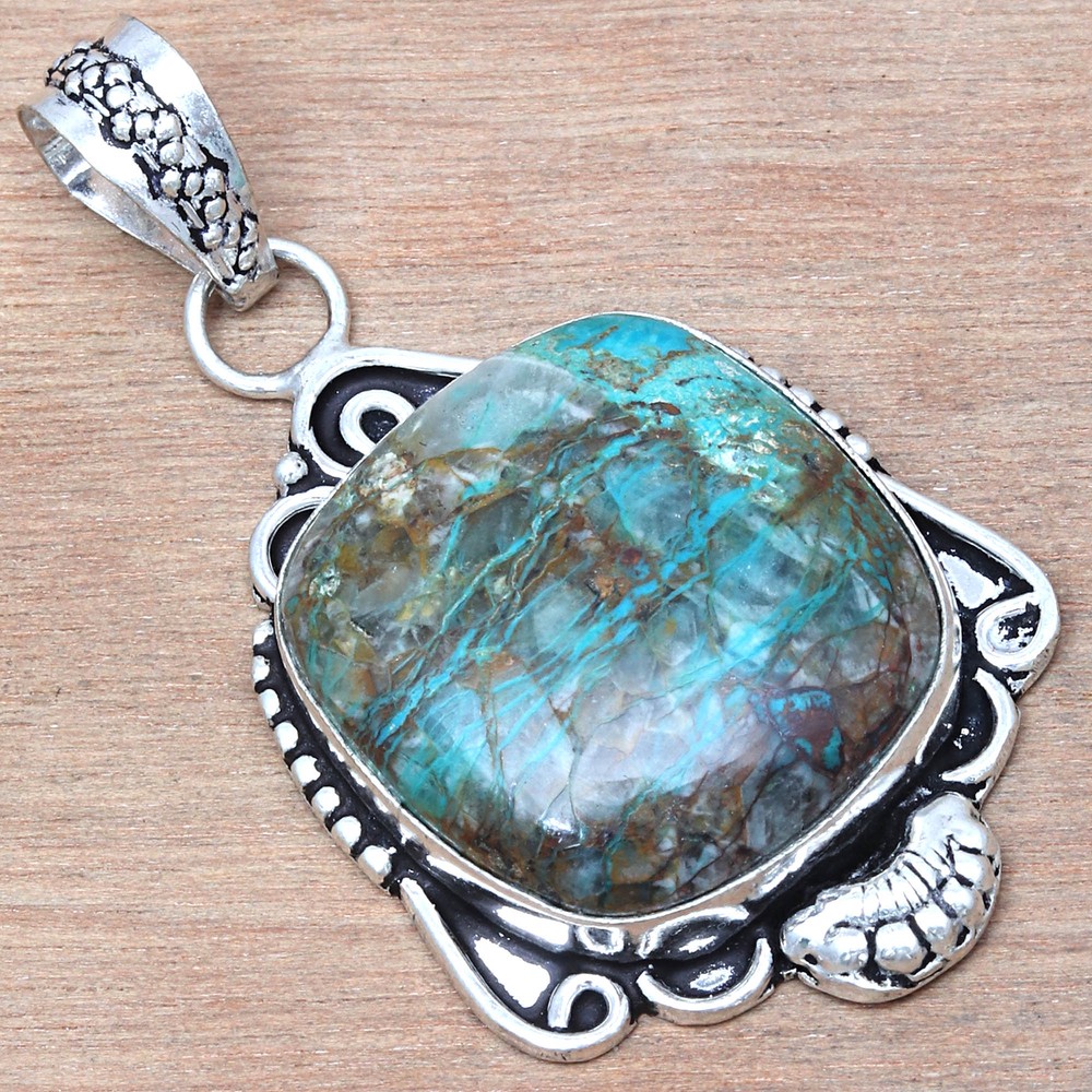 This stunning chrysocolla pendant is a true work of art! The vibrant blue-green gemstone is beautifully set in handmade ethnic silver, giving it a unique, bohemian charm. Perfect as a gift for her, the 2" pendant feels lightweight yet durable, and the 925 silver ensures lasting quality. The craftsmanship is exceptional—every detail reflects care and authenticity. Whether dressed up or down, it adds a touch of natural elegance to any outfit. Absolutely love it!