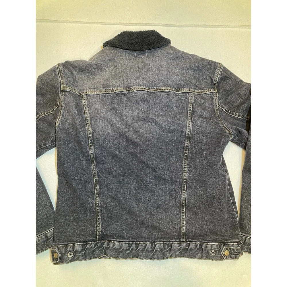 -Used. Sold as is -FITS LIKE A SIZE LARGE** -See photos for measurements -Fast shipping!!! Both stylish and functional, the Chubbies Denim Jean Jacket in a versatile black color is a wardrobe essential for those who appreciate a blend of classic and contemporary. Lots of very impressive stitching and added details. The mid-length Trucker style jacket is Sherpa lined and extra warm! Ensuring warmth during the cooler seasons of fall, spring, and winter.