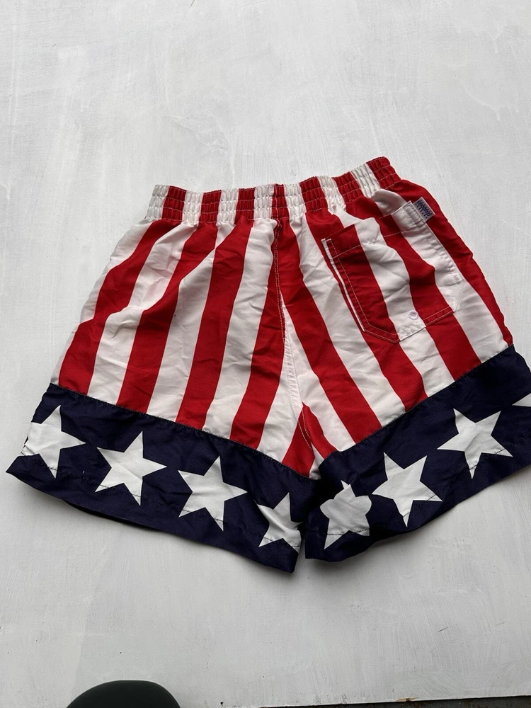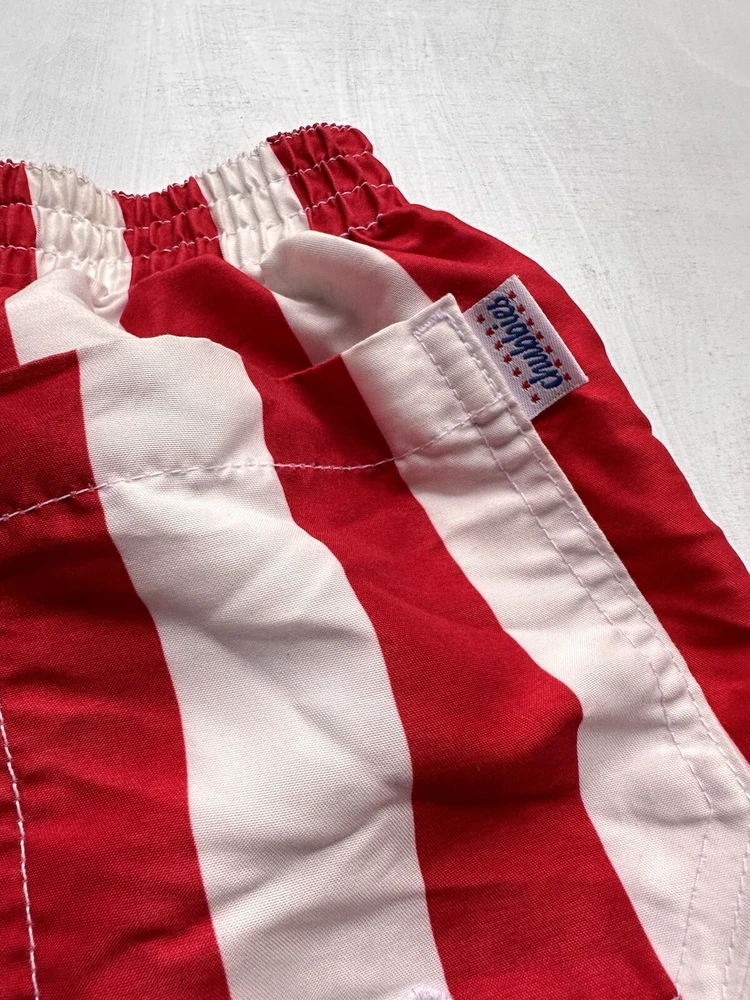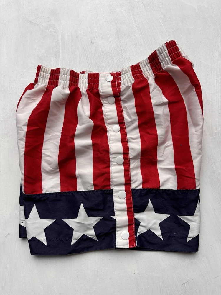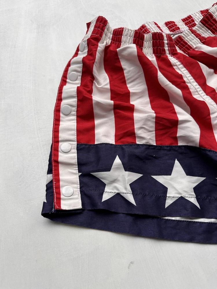 Get ready for the ultimate swimming experience with these Chubbies Men's Rip Away Shorts in the iconic American Flag pattern. These swim shorts feature a slimming design with an elastic waist and drawstring for a comfortable fit. The built-in briefs and pockets provide added convenience, while the UV-protection and water-repellent material keep you safe from the sun and water. Perfect for competition, training, water polo, lifeguard, surfing, or recreational activities, these swim shorts are made with high-quality materials that are chlorine-resistant and quick-drying. With a vintage look and classic theme, these shorts are a must-have for any swimmer's wardrobe.