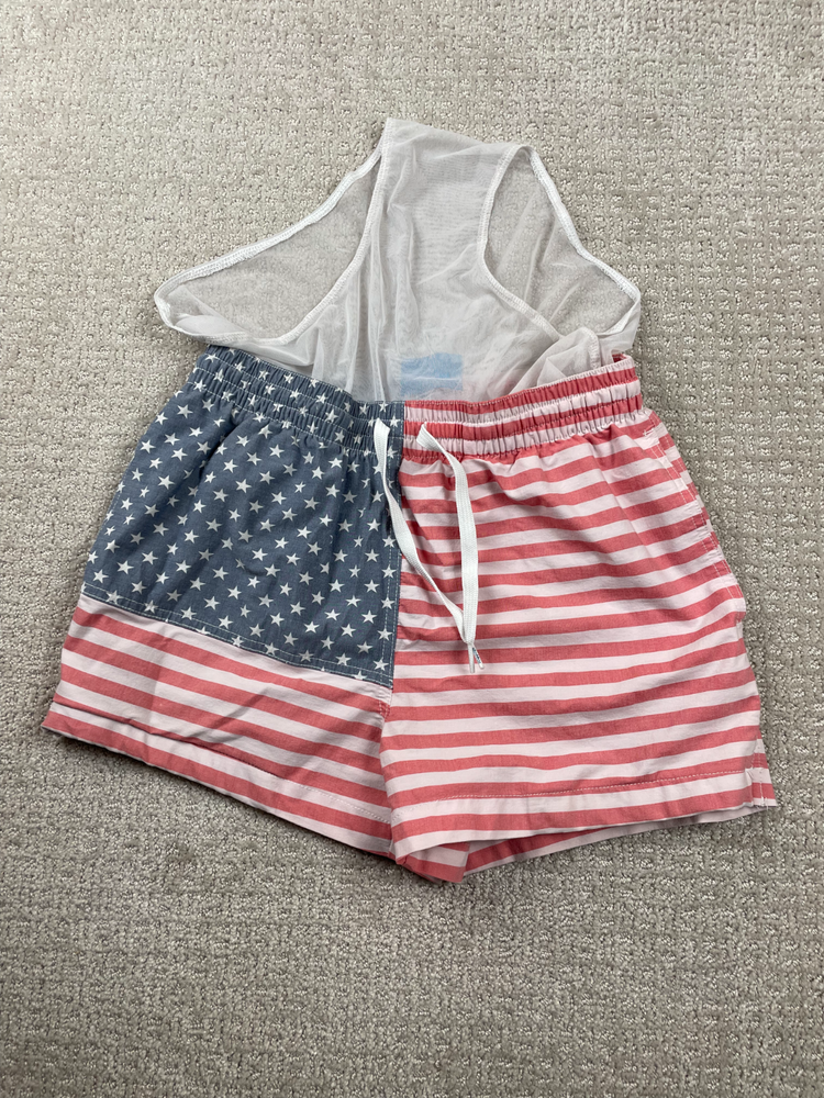 The Chubbies Men's Small 4" The Mericas Shorts in USA Flag Print are a stylish and comfortable choice for summer activities like surfing or recreational wear. Made from polyester with a mesh lining, these swim trunks are easy to care for with machine washable instructions. The multicolor design featuring the American flag adds a patriotic touch to your beach or poolside look, while the Chubbies brand ensures quality and style. Perfect for everyday wear or special occasions, these swim trunks are a great addition to any man's wardrobe.