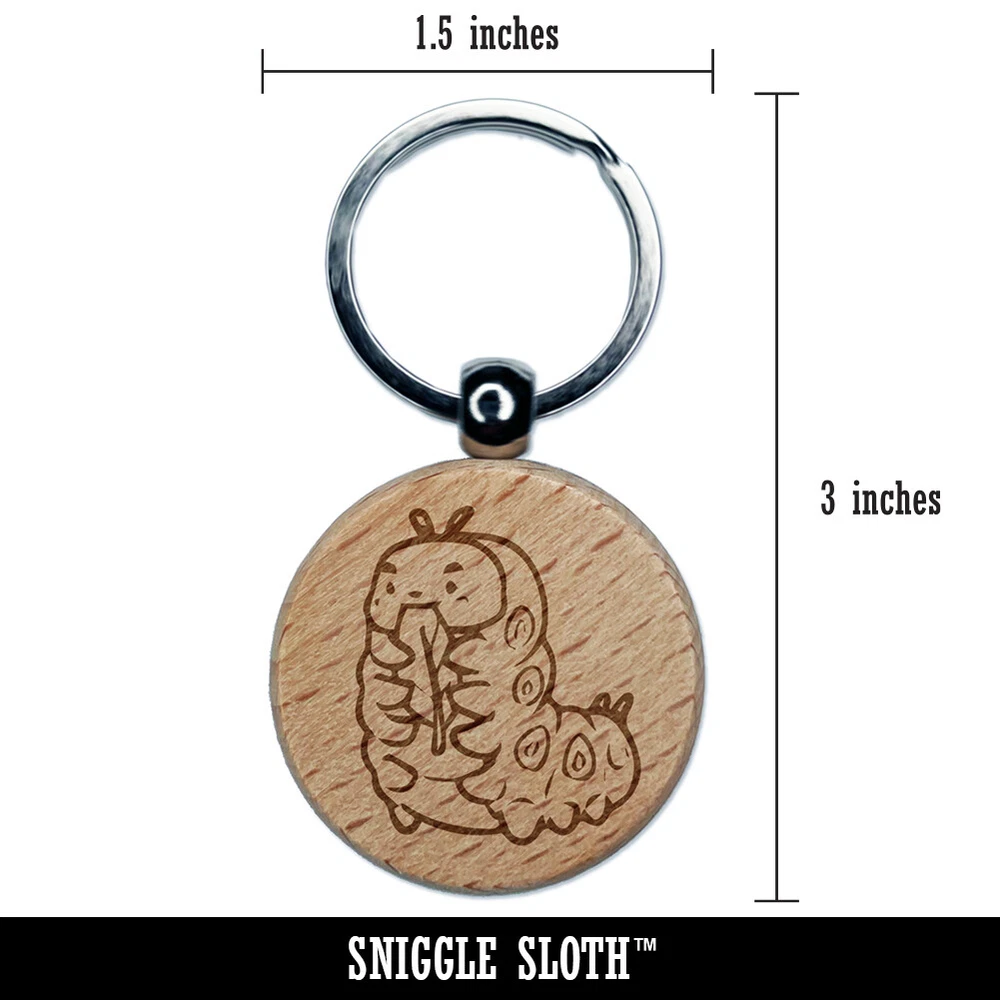 Chubby Caterpillar Eating Leaf Engraved Wood Round Keychain Tag Charm