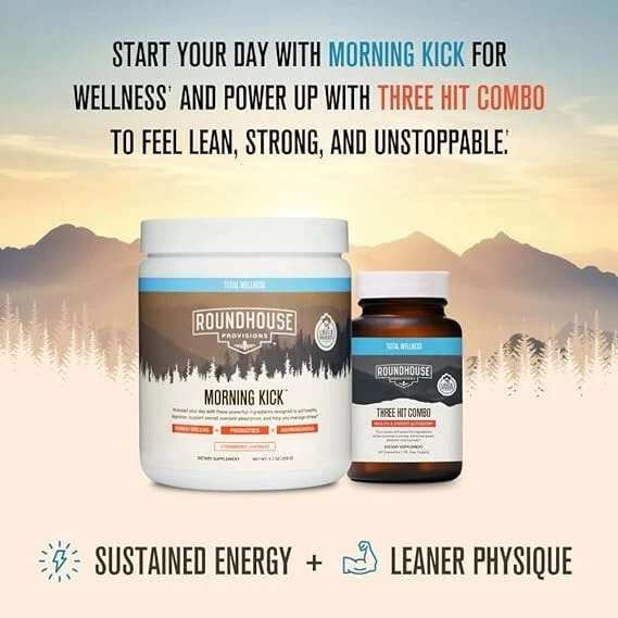 Chuck Norris Morning Kick, Greens Superfood Powder (Strawberry Lemonade) About this item: KICKSTART YOUR DAY: Start your day with Morning Kick, a delicious superfood greens powder drink that tastes like strawberry Lemonade. Enjoy benefits like improved digestion health, reduced bloating, balanced gut bacteria, improved bowel movements, stress support, GI strength, energy and joint care. POWERFUL INGREDIENTS: This powerful greens and superfood powder was formulated with probiotics to help support gut health. Ashwagandha to support brain function and help manage stress, and collagen to help protect joints. QUICK AND EASY TO PREPARE: Morning Kick is as easy as taking your daily supplements. Just mix 1 scoop with 8 fluid ounces of water… and enjoy! DELICIOUS ANY TIME: The delightful strawberry lemonade flavor provides a tasty pick-me-up any time day or night — emergency or no emergency. LONG LASTING: Please note, this product features a MFG Date, this is the date the product is manufactured, NOT an expiration date. We guarantee the product for 2 years from MFG Date.