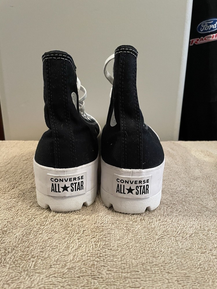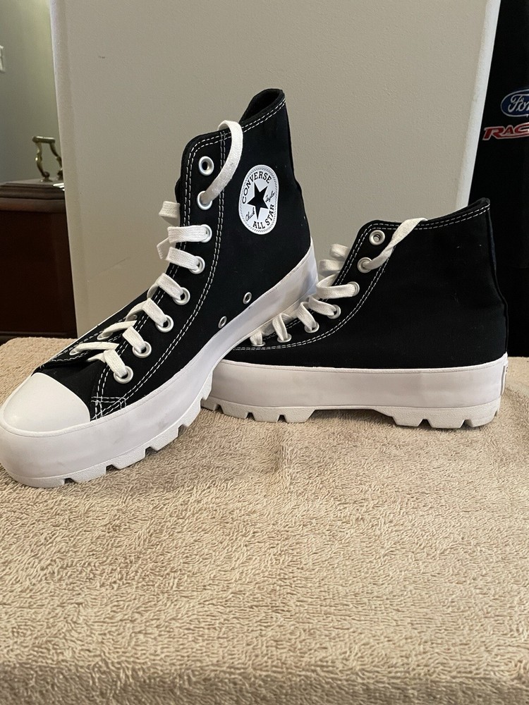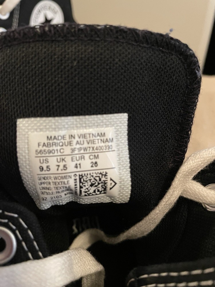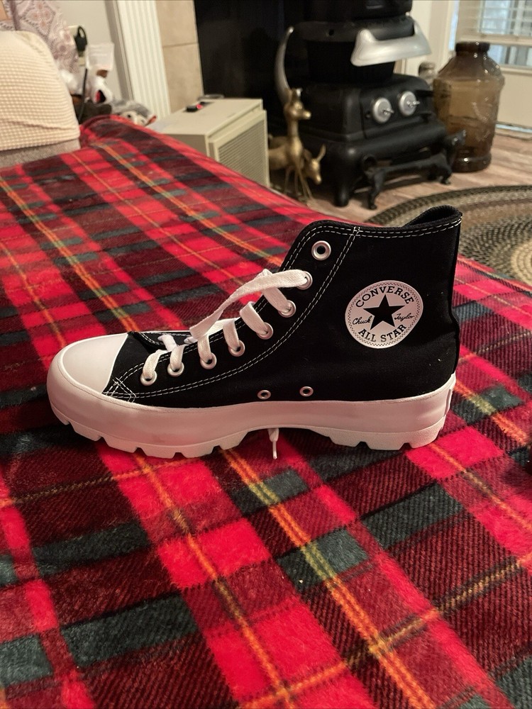 US Shoe Size:9.5Type:AthleticDepartment:Unisex AdultsColor:BlackTheme:StarsStyle:SneakerProduct Line:Converse Chucks All Star Chuck TaylorBrand:ConverseModel:Converse Chuck Taylor