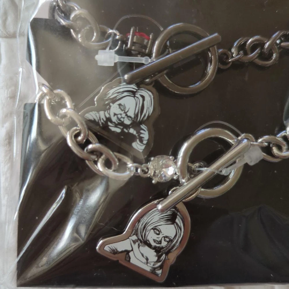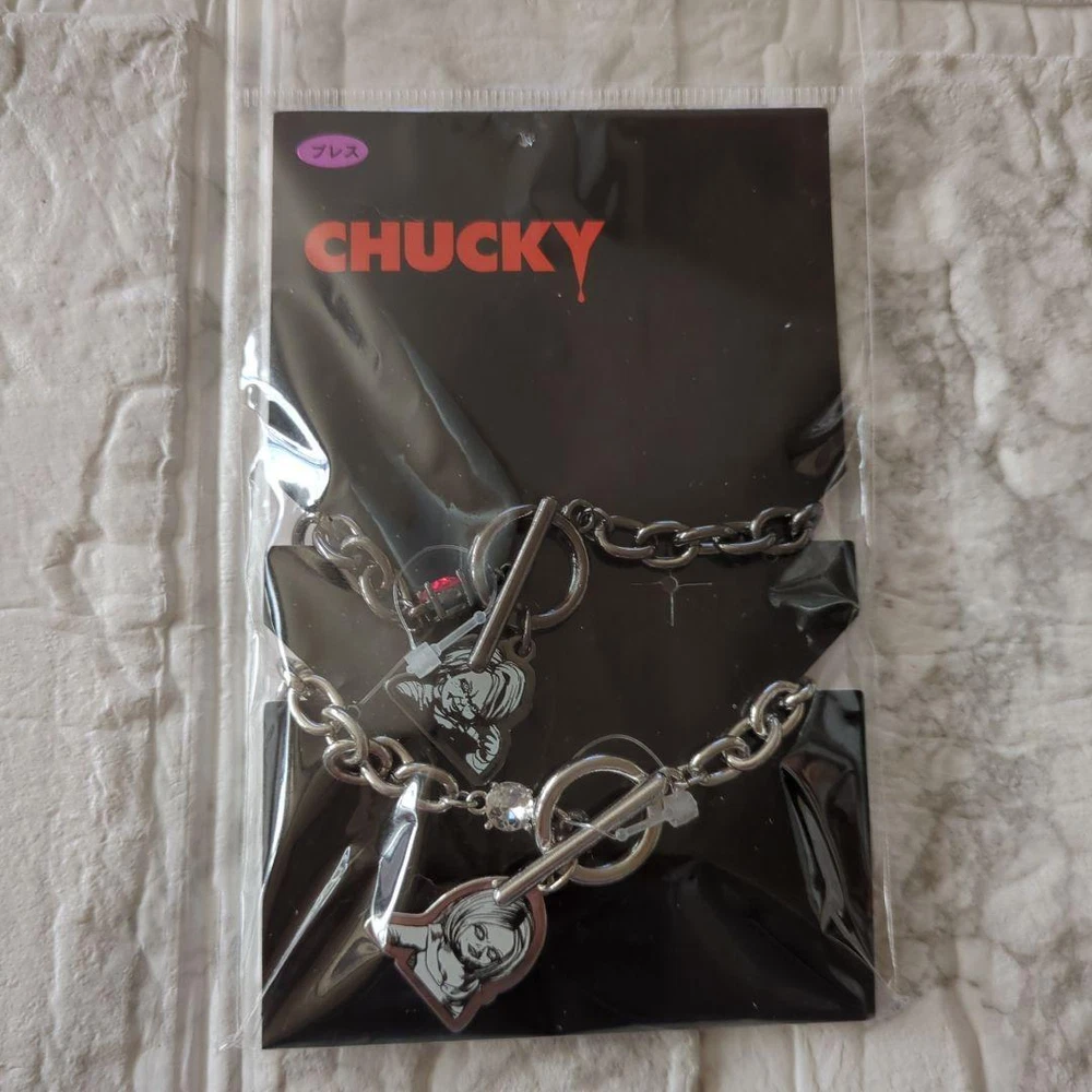Chucky & Tiffany 2-Piece Bracelet Set Silver Character Accessories New Key Features **Chucky and Tiffany Bracelet Set from Child's Play Series** - **Brand**: Child's Play - **Product Type**: Accessories - **Model**: Chucky and Tiffany Bracelet Set **Detailed Features**: - **Color**: Silver - **Size**: 17 cm (adjustable) - **Design**: Easy-to-remove mantles with decorative accents - **Style**: Wear together or separately for a cute look **Condition**: - Item is stored at home; please refrain from purchasing if you are sensitive to storage conditions. Perfect for fans of horror movies and collectors of character merchandise! Specifications Brand No Brand Country Japan Product Description Item Title Chucky Bracelet 2 Piece Set Character Goods Payment Supports managed payments Please pay within 5 days after auction is finished. About Us We are located in Japan. It's our pleasure to make you happy by proposing our recommend item. If you have any questions or request about items, please feel free to ask us. International Buyers - Please Note: -Import duties, taxes, and charges are not included in the item price or shipping charges. These charges are the buyer's responsibility. -Please check with your country's customs office to determine what these additional costs will be prior to bidding/buying. -These charges are normally collected by the delivering freight (shipping) company or when you pick the item up - do not confuse them for additional shipping charges. -We do not mark merchandise values below value or mark items as - gifts - The US and International government regulations prohibit such behavior. Thank you for your understanding.
