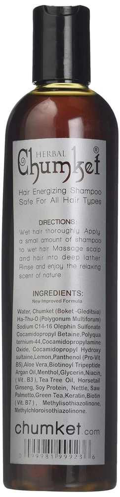 Chumket Herbal Shampoo Herbal Chumket Hair Re-Growth Shampoo with organic Botanical Extract helps promote strong, healthy, growing hair. Its rich, luxurious formula gently cleanses conditions and detangles hair while it thickens and returns hair to its natural healthy condition. Herbal Chumket Hair Re-Growth Shampoo restores moisture to dry, brittle and damaged hair. Safe to use on all types of hair including color treated, bleached and relaxed. Some users claimed to have noticed the delay onset of grey hair. Some users claimed to notice less hair loss. Herbal Chumket has been used for hundred of years in Asia for its exceptional healing properties to the people with problem hair & scalp. Product Details Brand Chumket Product Type Hair Shampoos Reduces hair loss (baldness) Prevents dandruff or itchy scalp Thicker hair sharp & adds volume to flat hair Soft, shinny & silkier hair Delays onset of grey hair - Powered by