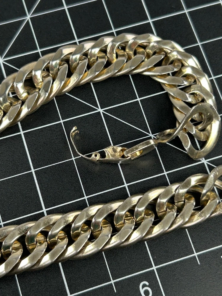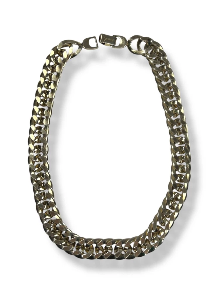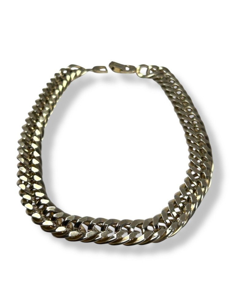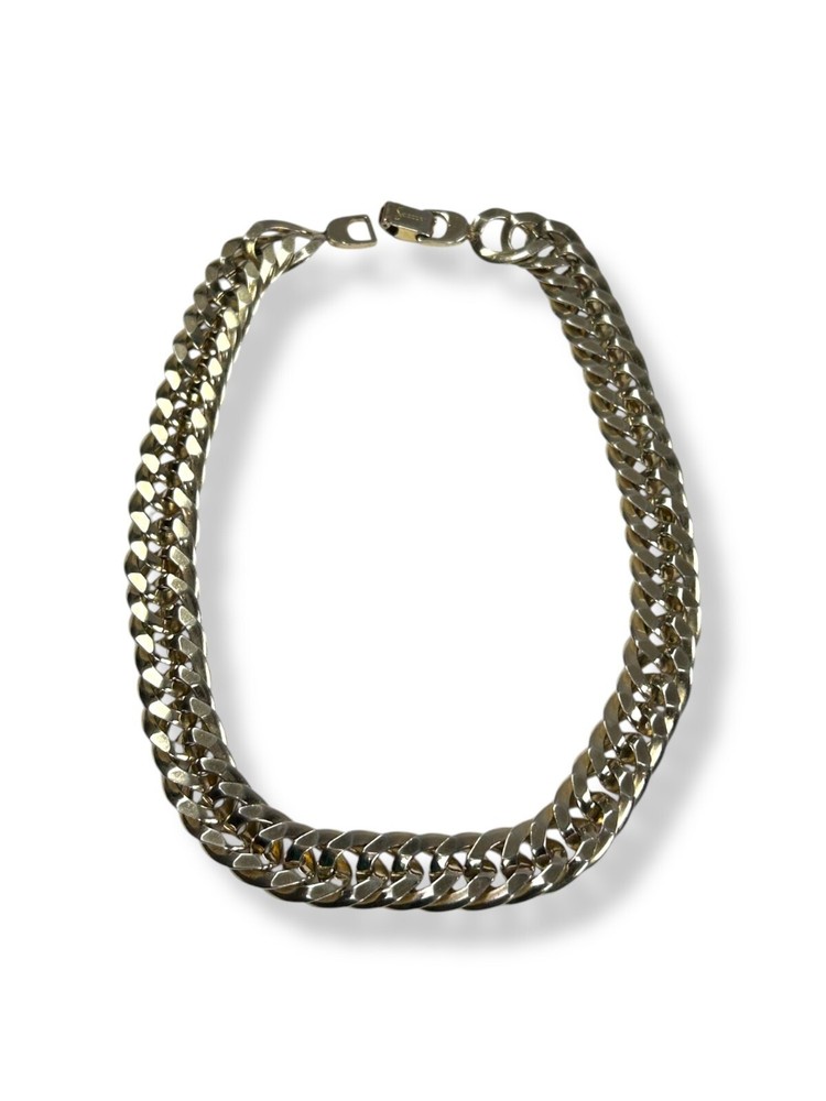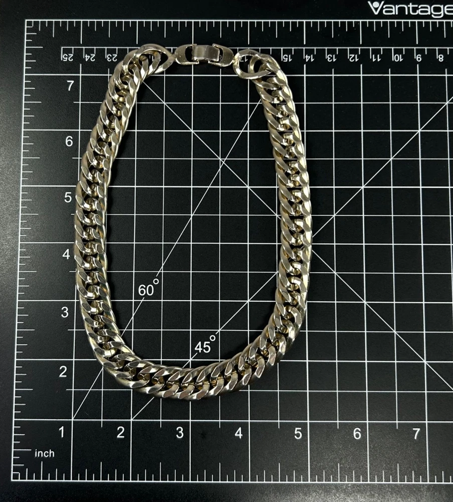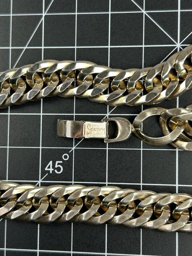 Pre-loved with minimal signs of wear, see photos for details Vintage Sperry Choker Chain Necklace Color appears to be white gold tone; Silvery-gold hue in the color Curb chainlink design Durable and dense quality metals Fold over clasp with engraved logo Fit sits slightly loose compared to a fitted choker necklace Closed/worn is 8" long Most likely made in USA #sperry #vintagesperry #sperrynecklace #chainlinknecklace #womensnecklace #chokernecklace #whitegoldtone #stainlesssteel #stainlesssteel #womensjewelry #curblinkchain #curblink