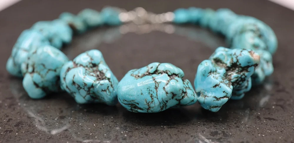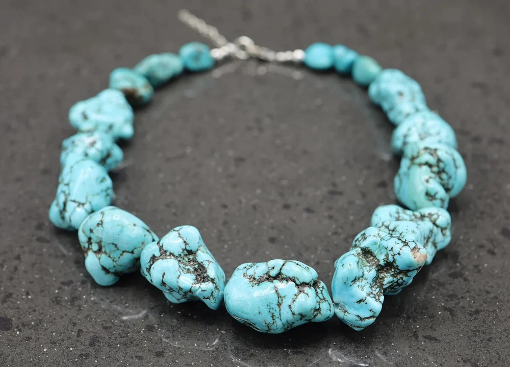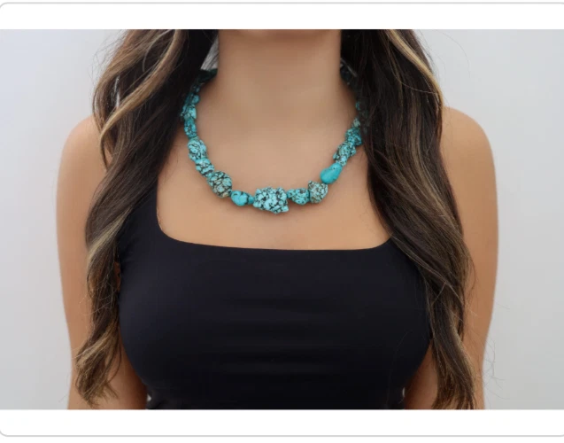 Genuine Statement Turquoise Necklace. This is the cutest statement turquoise necklace, It is all natural and the perfect addition to your jewelry collection. It goes beautifully with a casual or formal outfit or occasion due to the versatility of turquoise stones. These types of chunky/thick turquoise beaded necklaces have been very popular lately due to the beautiful blues and greens of the beads. ~-The turquoise beads are approximately 20-30 mm --Sterling silver option dos not come with extension chain. **Do not use liquid chemicals on the beads, just use a polishing cloth** Our items are shipped in a nice mesh pouch in a gift box. _________________________________________________________________________ All jewelry needs to be returned unworn and in its original condition and packaging. Earrings are NOT returnable for hygiene reasons. We hold the right to deny a return if the product you have sent back does not meet our requirements. You are responsible for the return shipping costs unless there has been a mistake on our end or an issue with the piece. If you are not satisfied with your purchase, please message us so we can fix any issues. We will look forward to seeing your positive review, which will help us in the future as we are a small family-owned business. THANK YOU VERY MUCH for visiting our store! We hope you come by again.