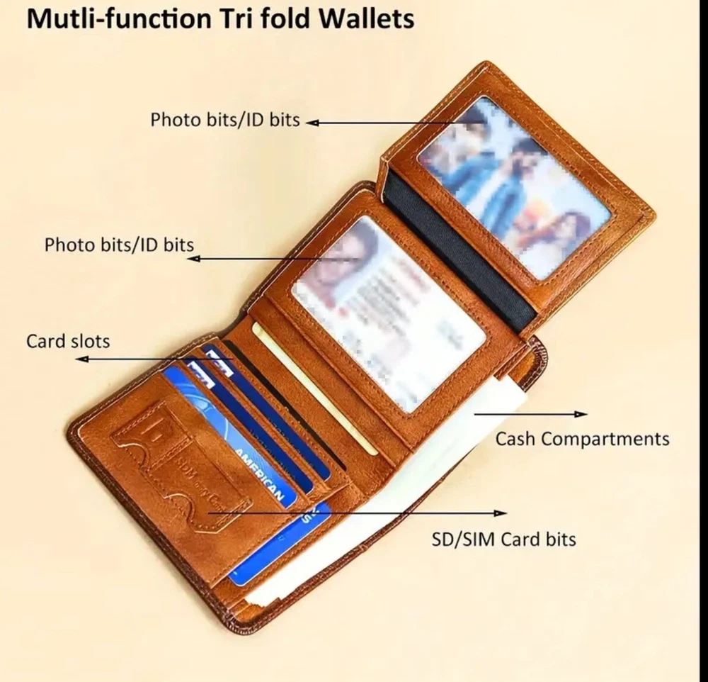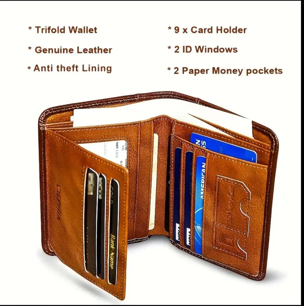 Ciephia Mens Genuine Leather Trifold Wallet with RFID Blocking - Brown