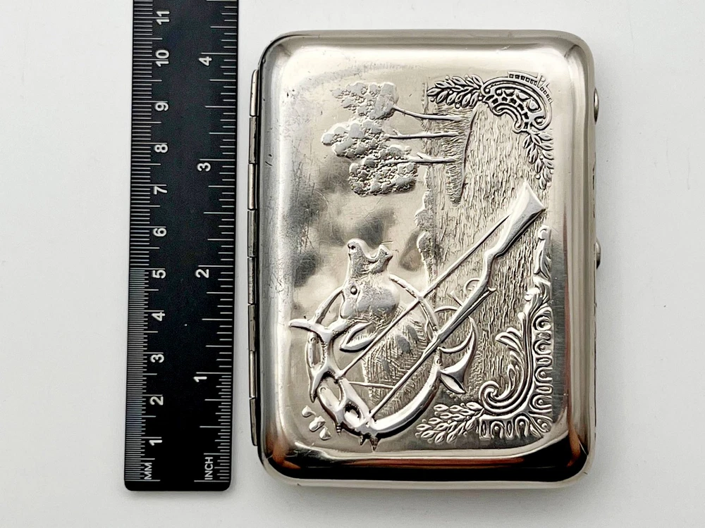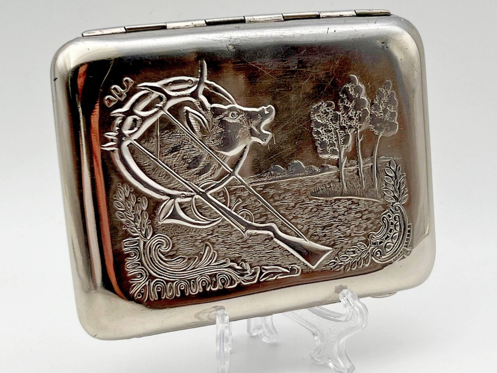 $ 20.6USSR Antique Silver Plated Brass Cigarette Case With Deer Image