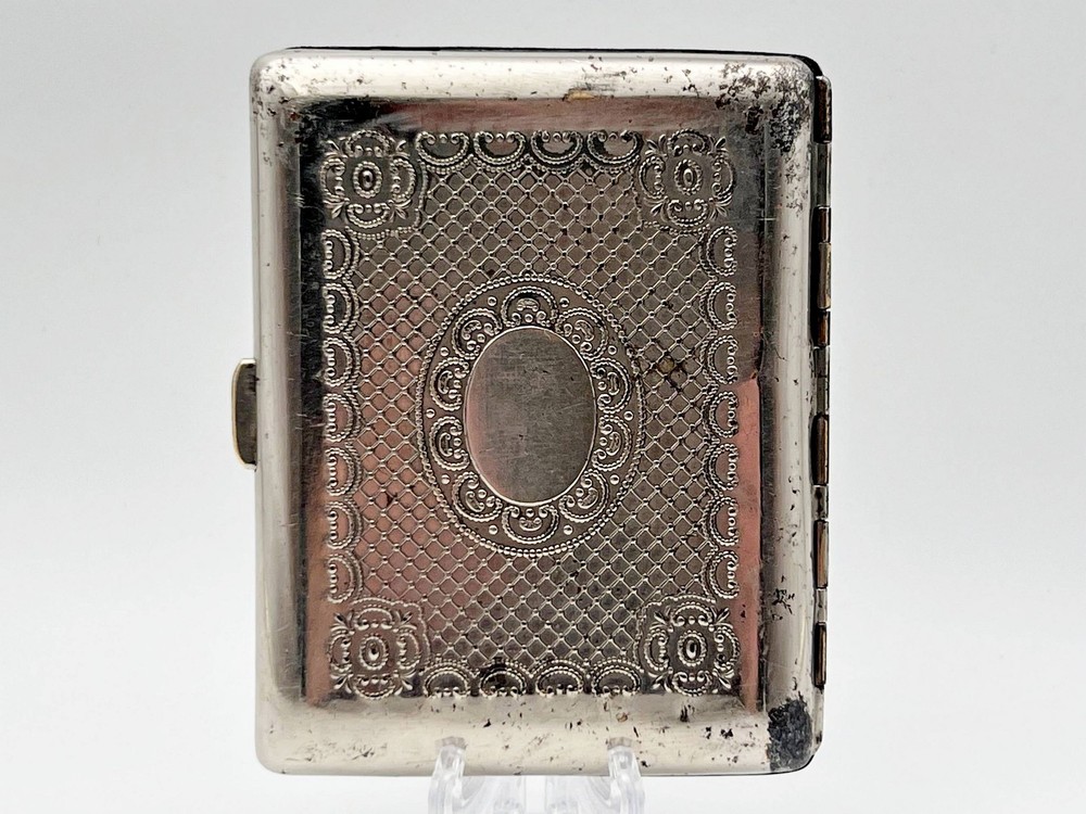 USSR Antique Silver Plated Brass Cigarette Case With Deer Image