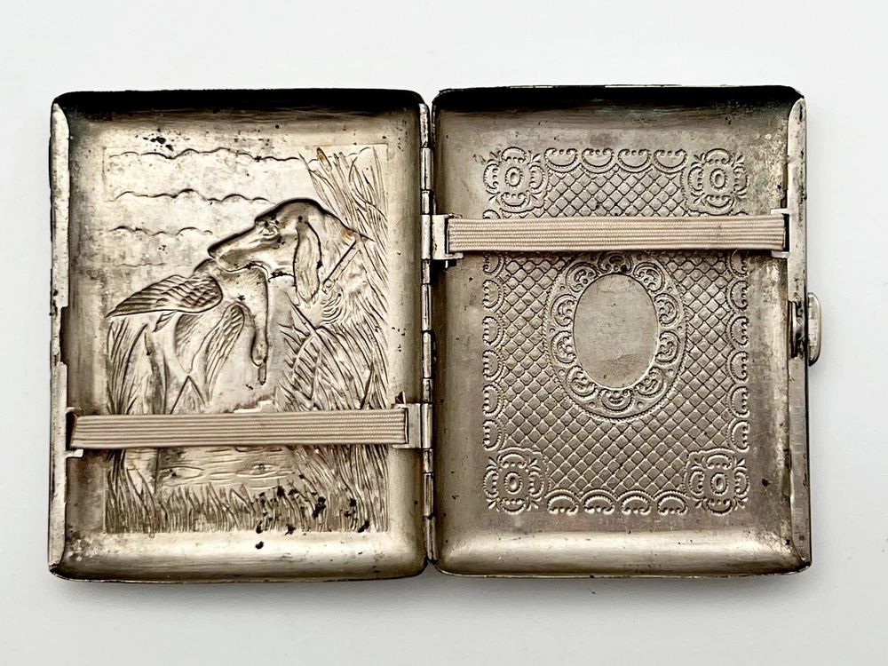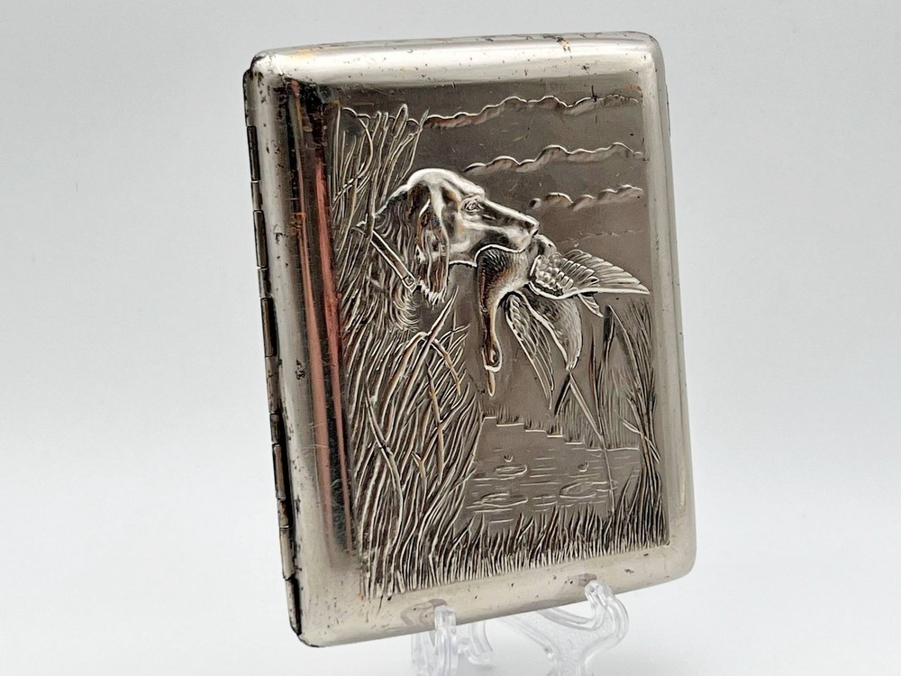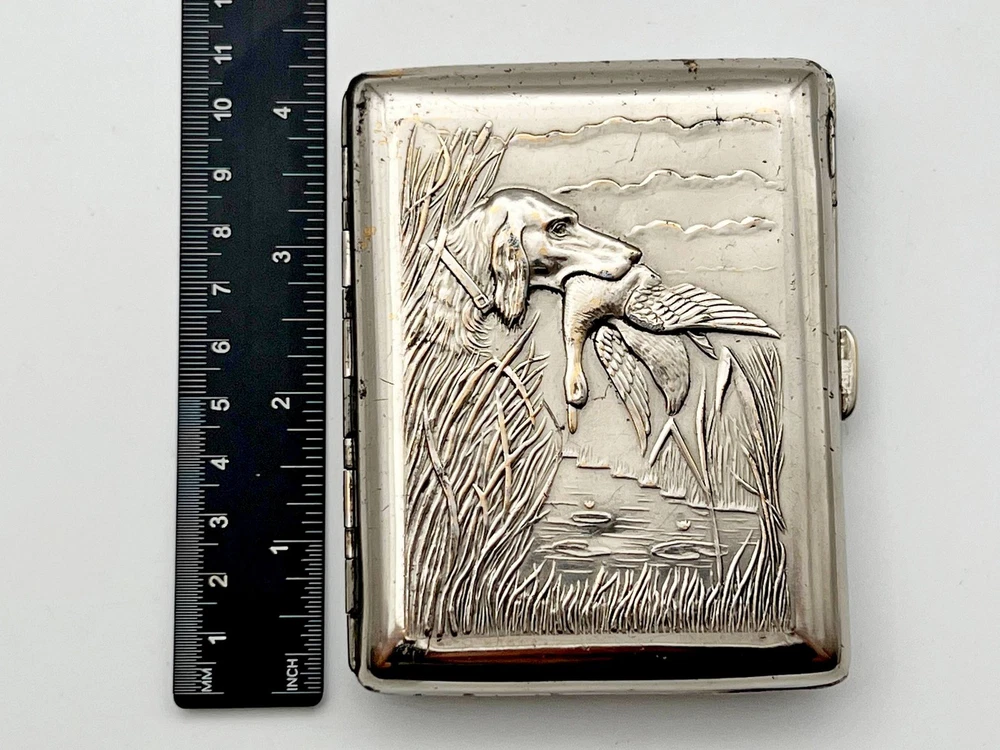 Retro Collectible Cigarette Case Hunting Vintage Smoking Box Dog and Duck Magnetic metal. This vintage cigarette case has been restored: the metal has been cleaned and polished, minor touch-ups have been applied where the original finish was lost, and, if needed, the elastic bands have been replaced. The original aesthetics have been preserved, making it a great addition to any collection. Could be a great gift for someone you love or can be added to your collection. Contact me if any questions. I do offer combine shipping discount if you buy 2 items or more. I make shipments the next business day after the purchase. Buyer protection is in effect. Please watch the photos carefully as they are important part of description. Thanks for your interest. Have a look at some other lots at our store. 💛💙