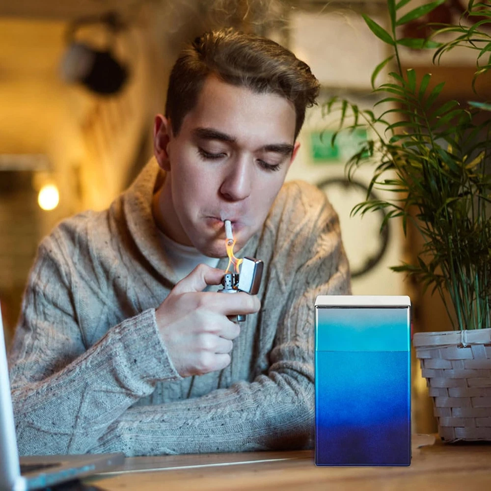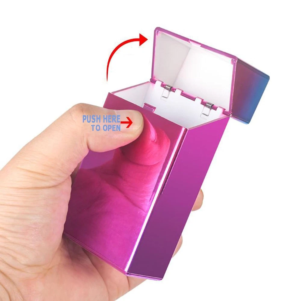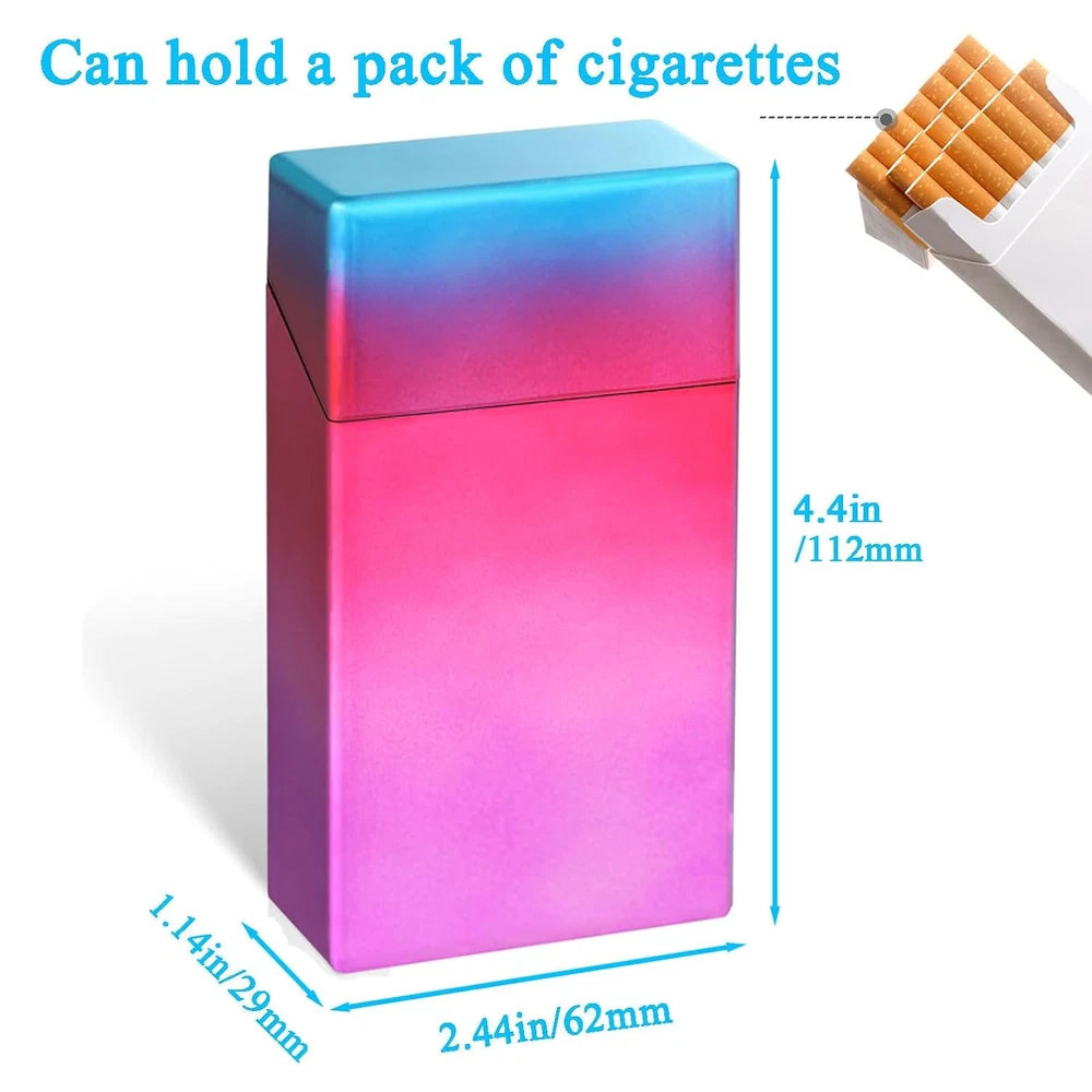 This cigarette case which is convenient to hold, lightweight and sleek. it can store 20 100s or normal size cigarettes, lighters, coins, pills, etc Easy to Use,You can put a whole pack of 100 mm/3.93 inches of cigarettes in a plastic cigarette case together with the original cigarette case. It does not need to be placed one by one like other cigarettes, and it is very comfortable to use. Sturdy material keep your cigarettes and other items from crushing and keeping away from moisture. The cigarette case use 2.1mm thick material and can use the elasticity for a long time.The switch button can be opened with one touch, can be shared with anyone, and can introduce the gentleman's style. Our tube cases are suitable for different occasions and places. Whether it is work or vacation, indoor or outdoor, the exquisite and compact case fits every scene perfectly, greatly improving your quality of life Product Description
