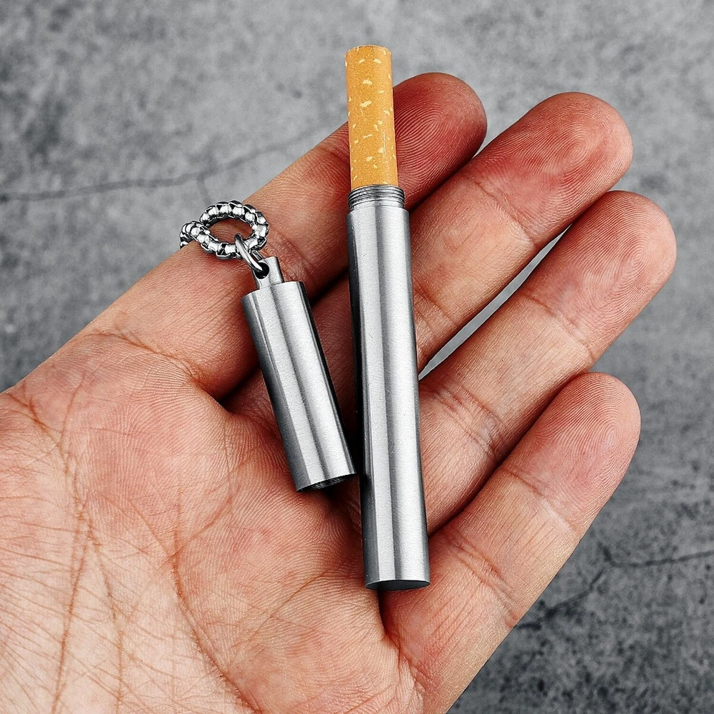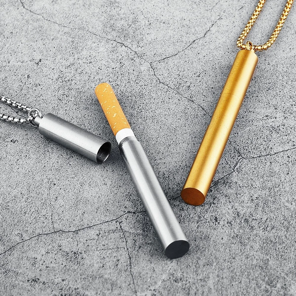 Cigarette Inside Holding Necklace Silver Stainless Steel Pendant Case Chain