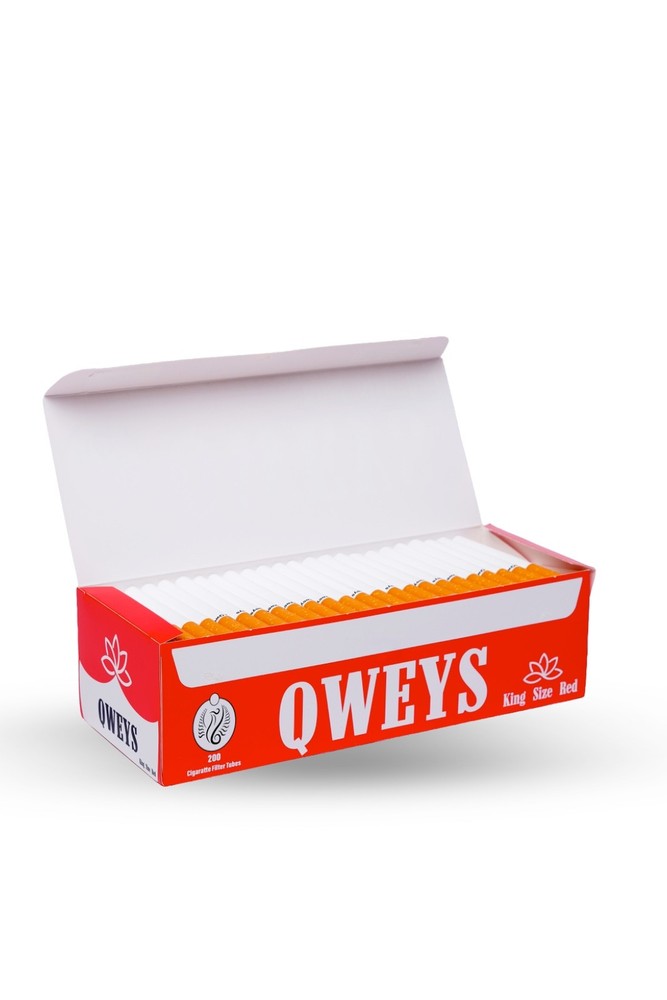 The QWEYS King Size Red Cigarette Filter Tubes are designed to fit all standard king size cigarette injectors and rolling machines. This value bulk pack includes: 10 Retail Boxes 200 filter tubes per box Total: 2,000 cigarette tubes Tube Dimensions Length: King Size (standard cigarette length) Filter Size: Standard king size filter Compatibility: Works with all king size cigarette injectors and rolling machines Bulk Value Advantage The 10-box bundle is perfect for heavy users, shops, and wholesale buyers who want maximum savings and long-term supply. The compact, stackable boxes make storage and display easy.