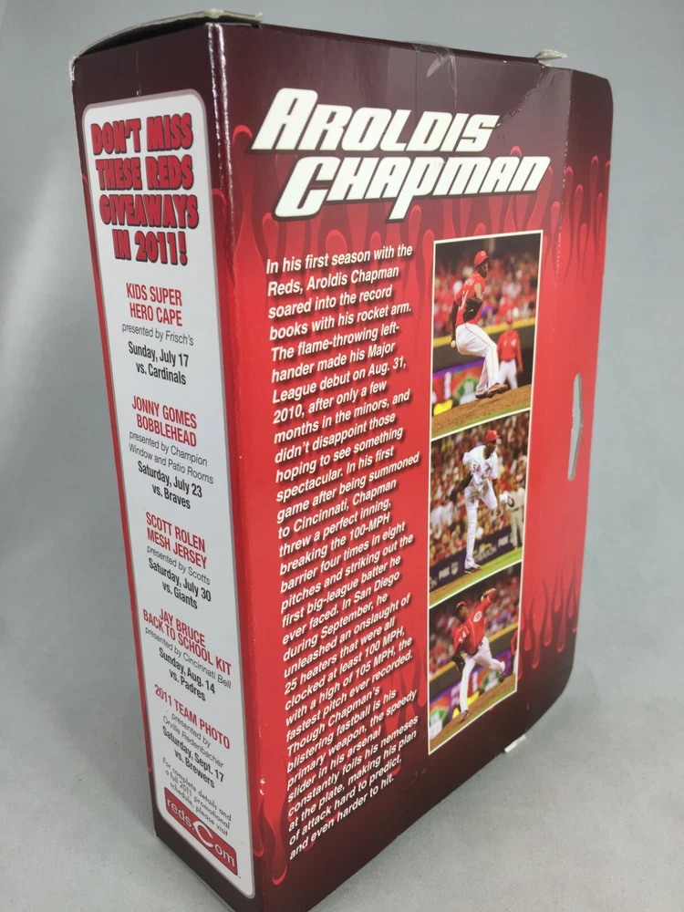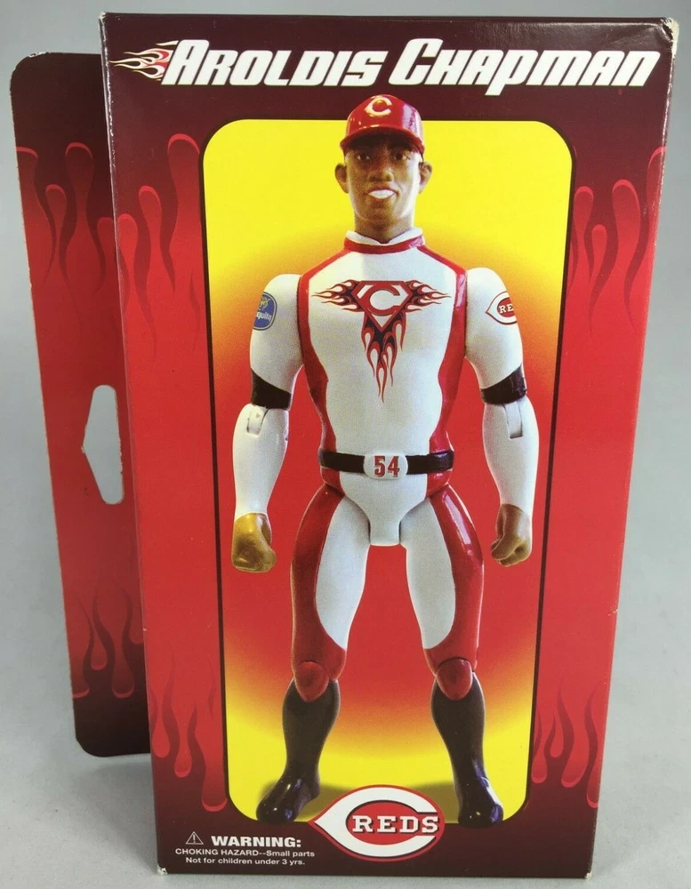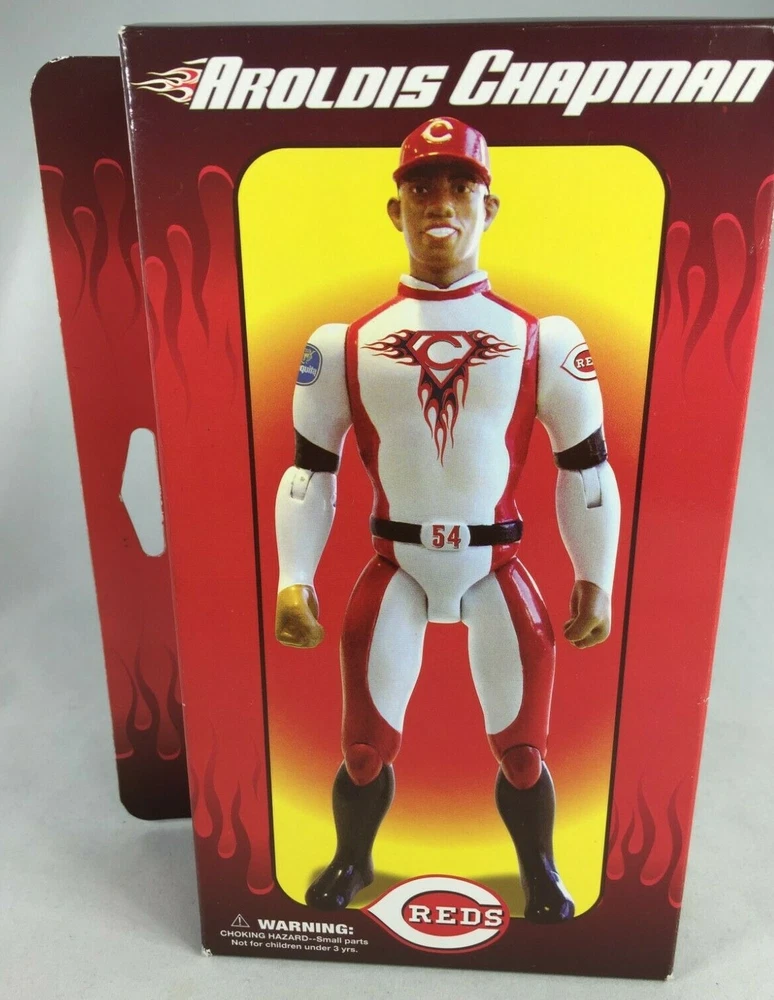 Officially Licensed: Yes Brand: idegy Country/Region of Manufacture: Unknown Featured Refinements: Stadium Giveaway Size: 7 inch Color: Multi-Color Product: Action Figure Sport: Baseball-MLB Gender: Unisex Adult League: Major League (MLB) Pre & Post Season: Regular Season Team: Cincinnati Reds Player: Aroldis Chapman