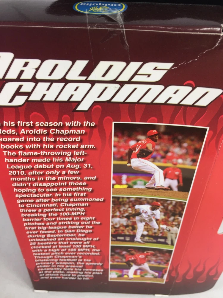 Cincinnati Reds 2011 Aroldis Chapman 7 " Action Figure SGA Sealed Yankess Cubs BRAND NEW NEVER OPENED AROLDIS CHAPMAN 7 INCH ACTION FIGURE WAS A STADIUM GIVEAWAY IN 2011✨ SPONSORED BY CHAQUITA BANANA, A GREAT COLLECTIBLE FOR ANY REDS FAN CHAPMAN IS FAMOUS FOR HIS FASTBALL CLOCKING OVER 105 MPH A GREAT PITCHER WHO BECAME A STRIKEOUT MACHINE WOULD MAKE A NICE GIFT FOR ANY BASEBALL FAN ✨✨✨✨✨✨✨✨✨✨✨ The VinKris Collection is committed to delivering a great experience! We will ship to you with the greatest of care All items are shipped in sturdy boxes We use packing materials appropriate for the product to help ensure safe delivery Shipments to the United States and Protectorates are handled via USPS International shipments will ship via Ebay's International Shipping Program All packages are shipped within 1 business day of payment We ship daily Monday through Saturday Worry free purchases, we stand behind everything we sell with free 30 day returns We have thousands of happy customers and our goal is 100% customer satisfaction We are happy to answer any questions